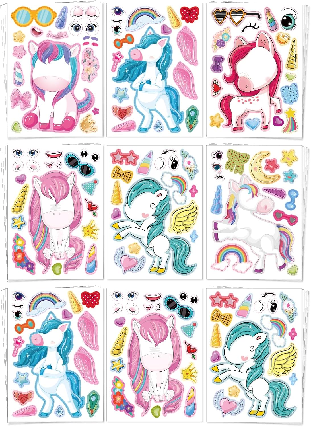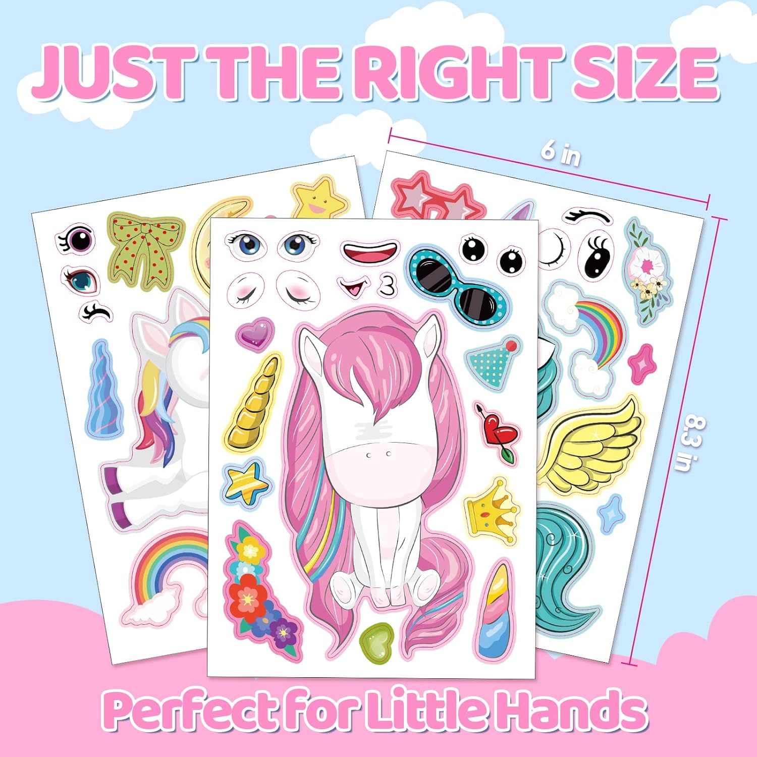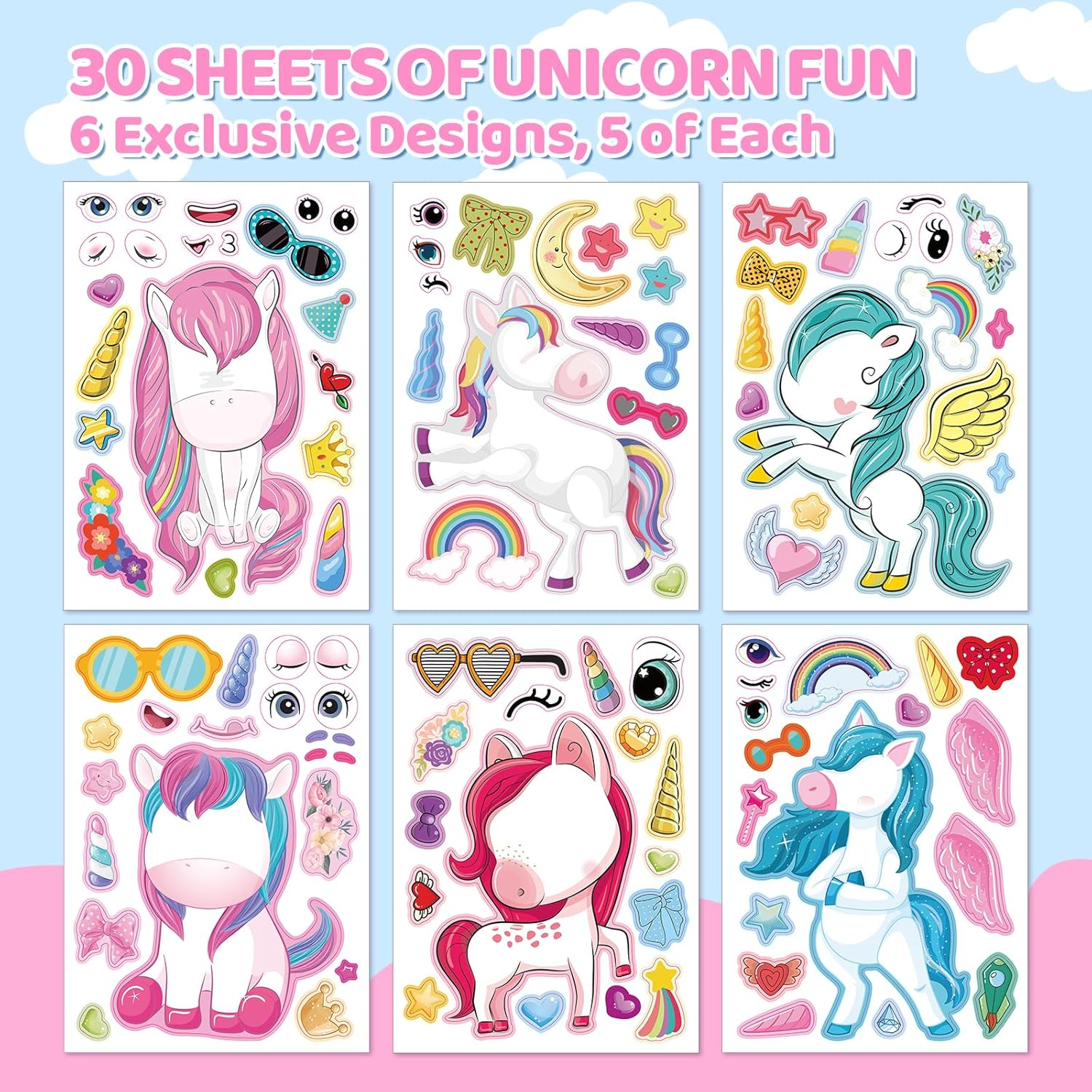 Aowplc 30 Sheets Make a Unicorn Stickers for Kids Party Favors, Birthday Decorations & Craft Activities