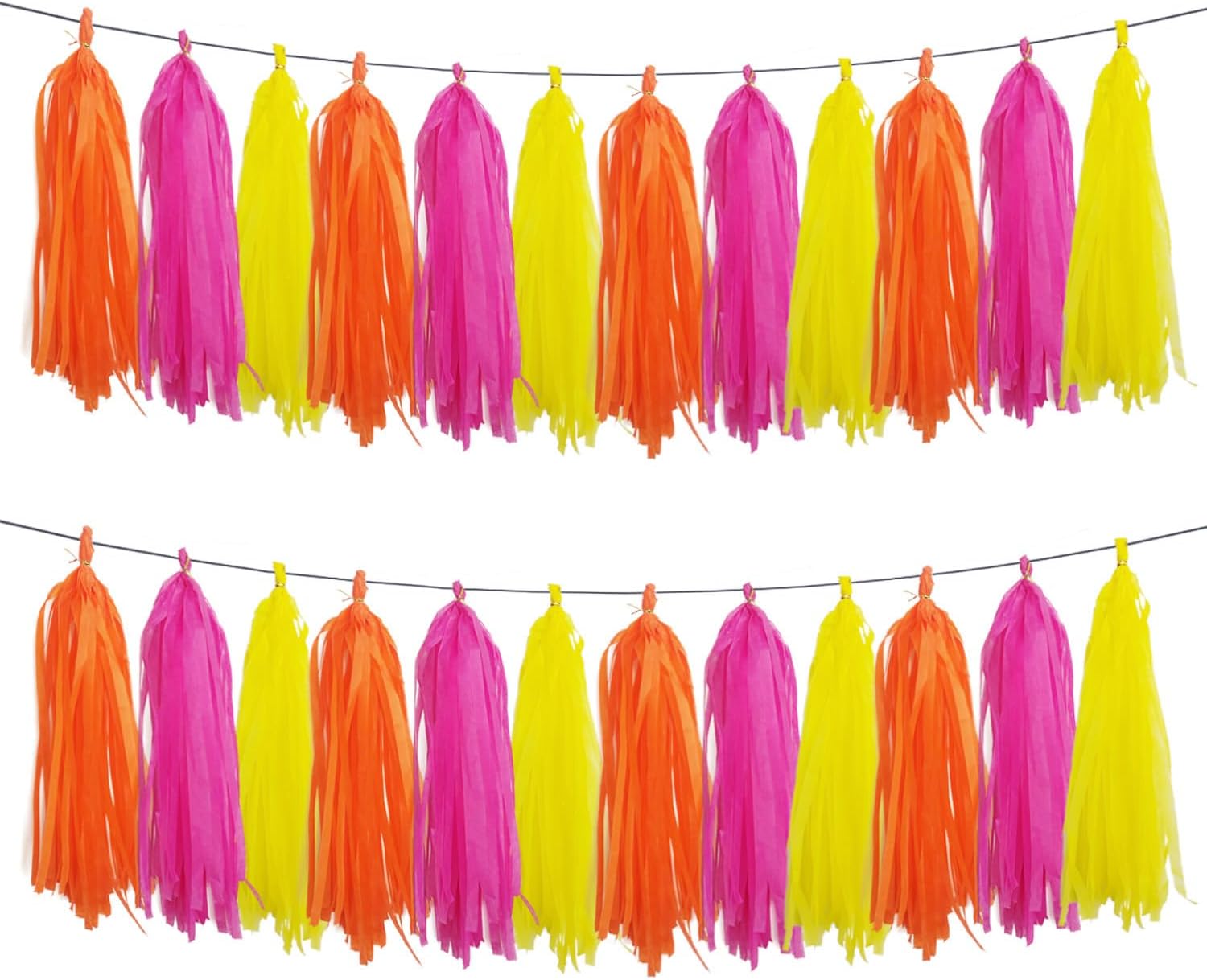 GAKA Orange Yellow and Hot Pink Tissue Paper Tassel,Paper Tassel Garland Banner for Party Decor Supplies,15 PC