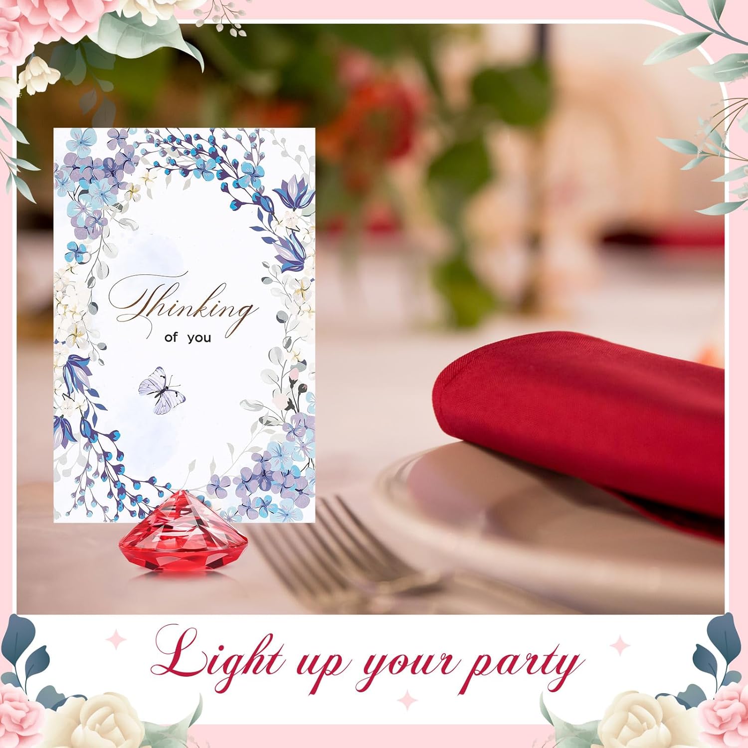 Boao 24 Pack Diamond Place Card Holders Acrylic Table Number Holder Card Stands Crystal Diamond Party Decorations Favor for Weddings Home Table(Red)
