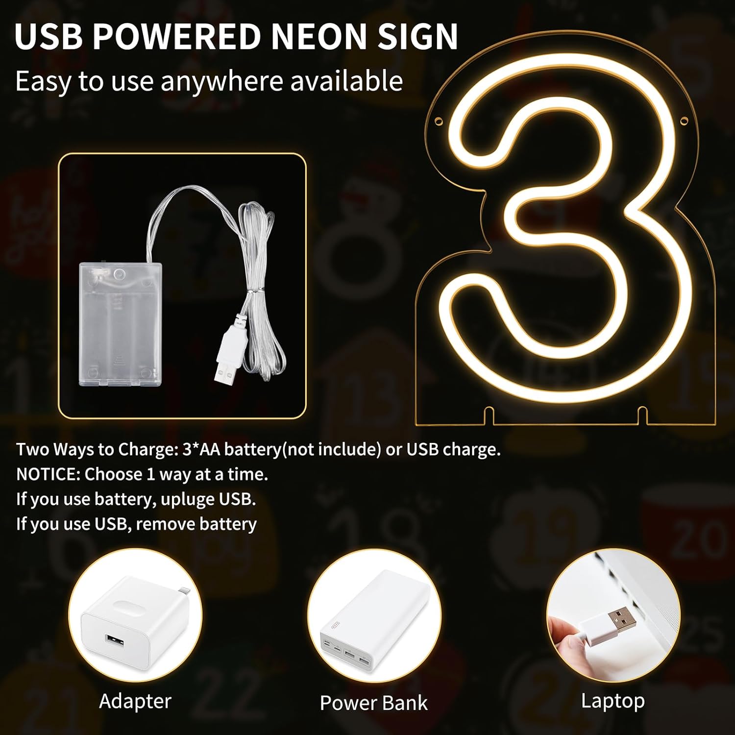 - 11.3" x 8.3" Number 3 Light Up Sign! Whether it’s a birthday bash, wedding, kids' room, home decor, or a special event, this Number 3 Neon Sign is the ultimate vibe booster! It’s also the perfect gift for Valentine’s Day, Christmas, or any occasion—your loved ones will adore it!