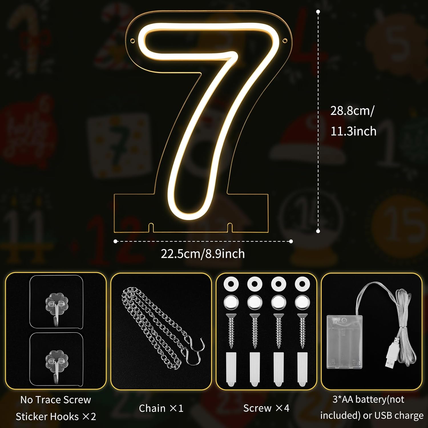 - 11.3" x 8.9" Number 7 Light Up Sign! Whether it’s a birthday bash, wedding, kids' room, home decor, or a special event, this Number 7 Neon Sign is the ultimate vibe booster! It’s also the perfect gift for Valentine’s Day, Christmas, or any occasion—your loved ones will adore it!