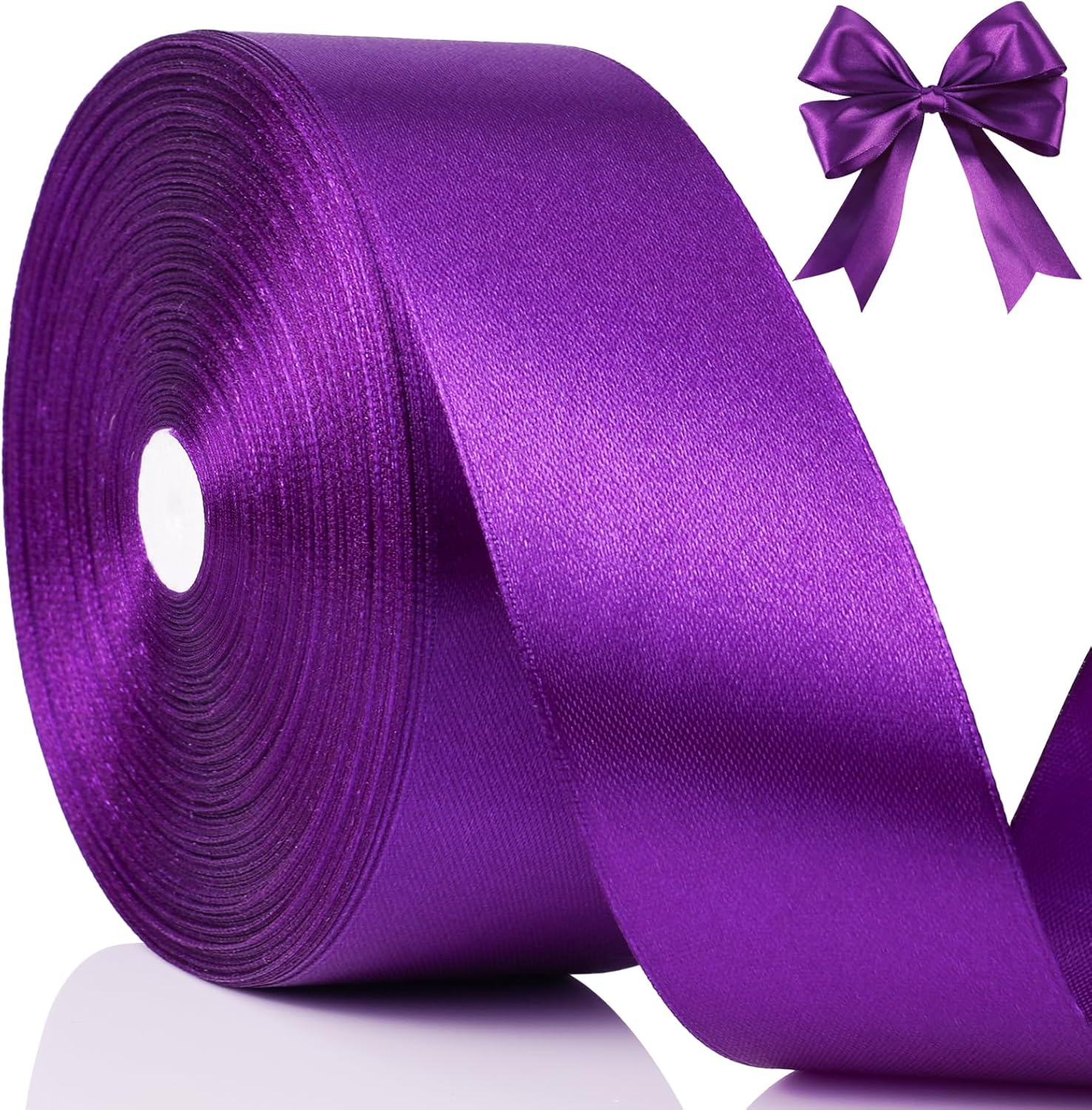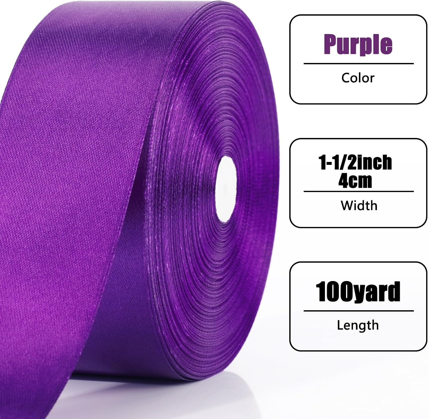 NESCCI 100 Yards Ribbon,1-1/2 Inch Purple Satin Ribbon,Single Face Satin Ribbons,Perfect for Gift Wrapping,Wedding Decoration,Handmade Bows,Wrapping Bouquet, Halloween, Christmas