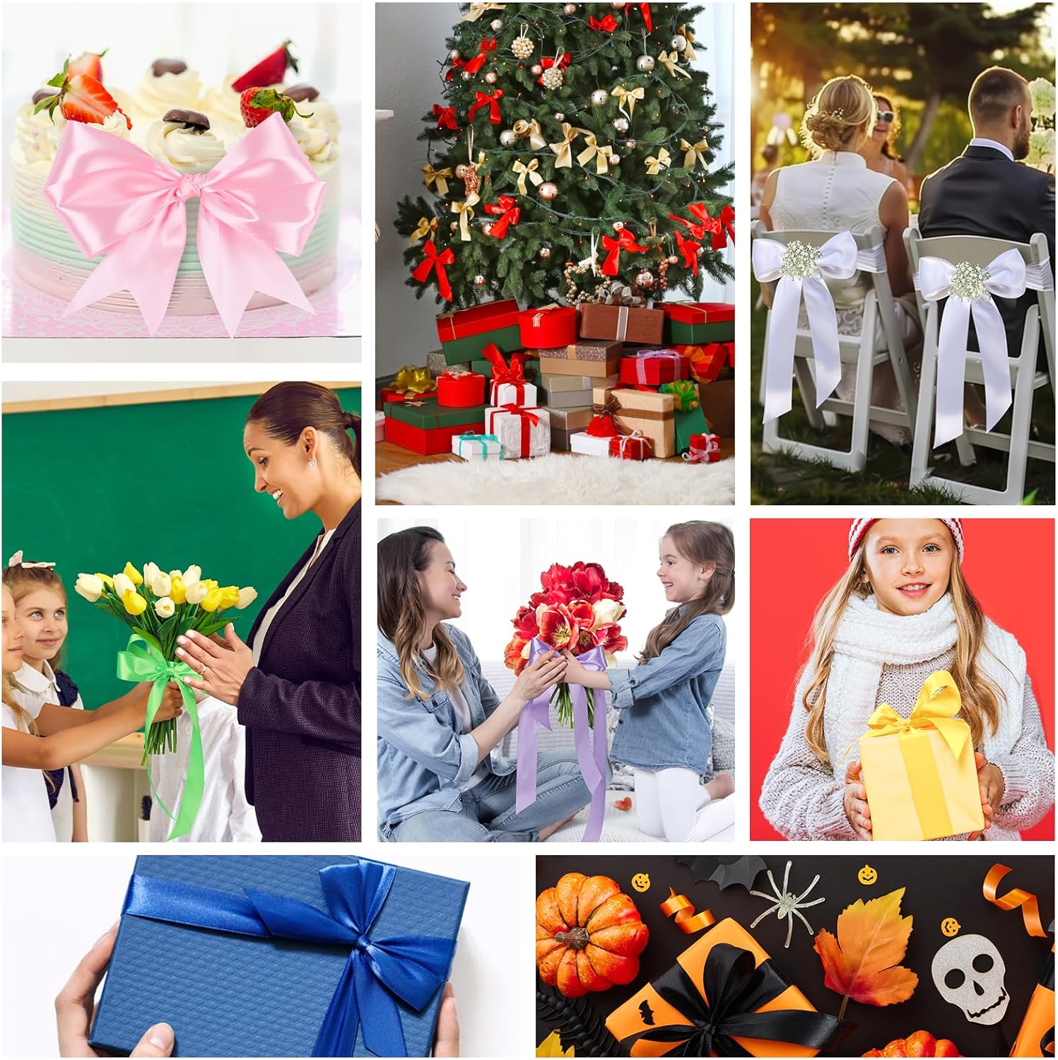 - π Use Occasions: Ribbon is smooth, glossy, and not easily wrinkled, making it the perfect choice for gift packaging and holiday decoration. It is perfect for decorating occasions such as weddings, baby showers, Halloween, Christmas, graduation season, etc.