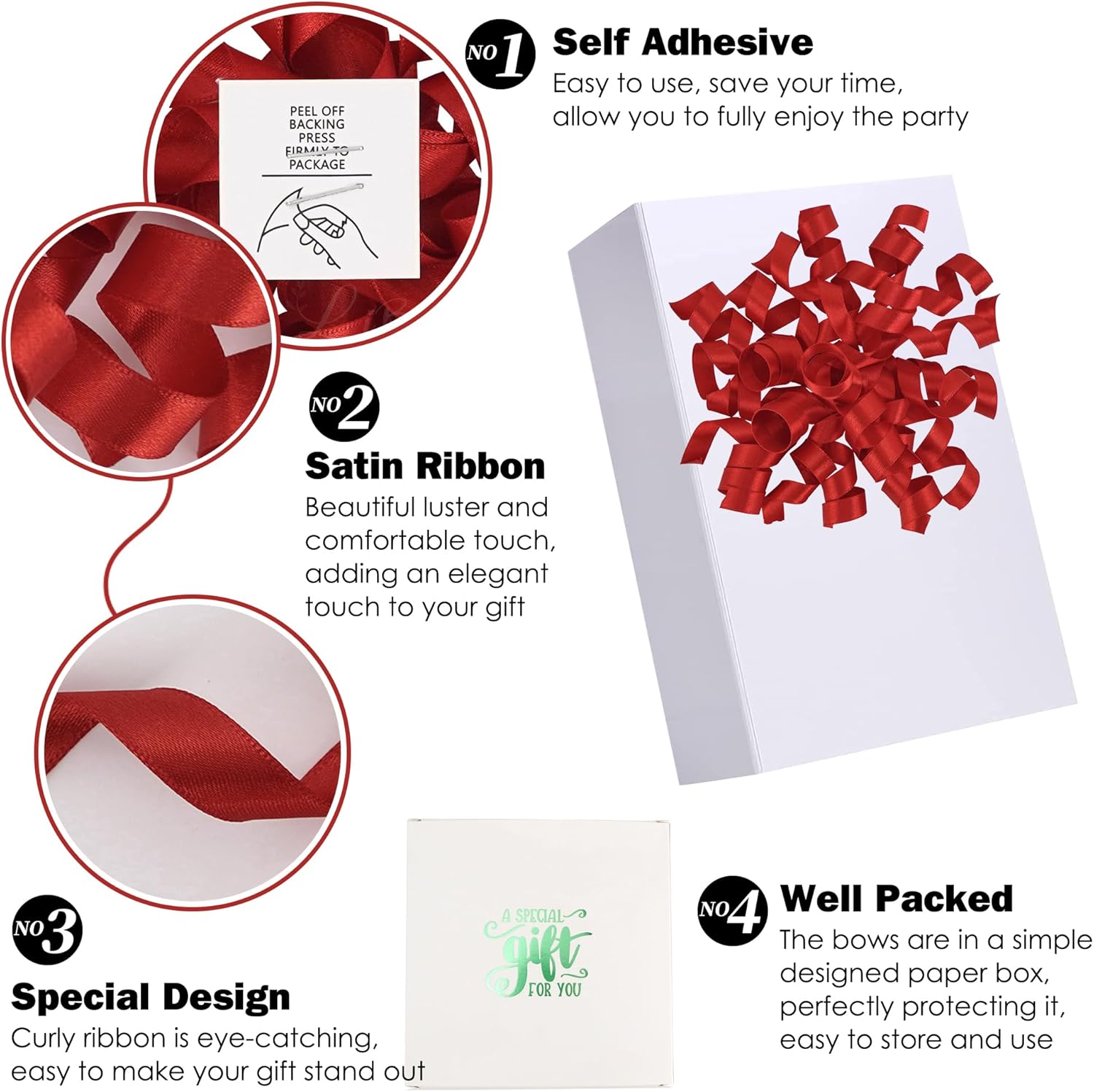 - Value Package: You will receive 8 pieces of satin gift wrap bows in the package, satisfying your daily decoration needs. After wrapping your gift, sticking the premade bows to a gift is a unique finishing touch that makes your package more sophisticated.