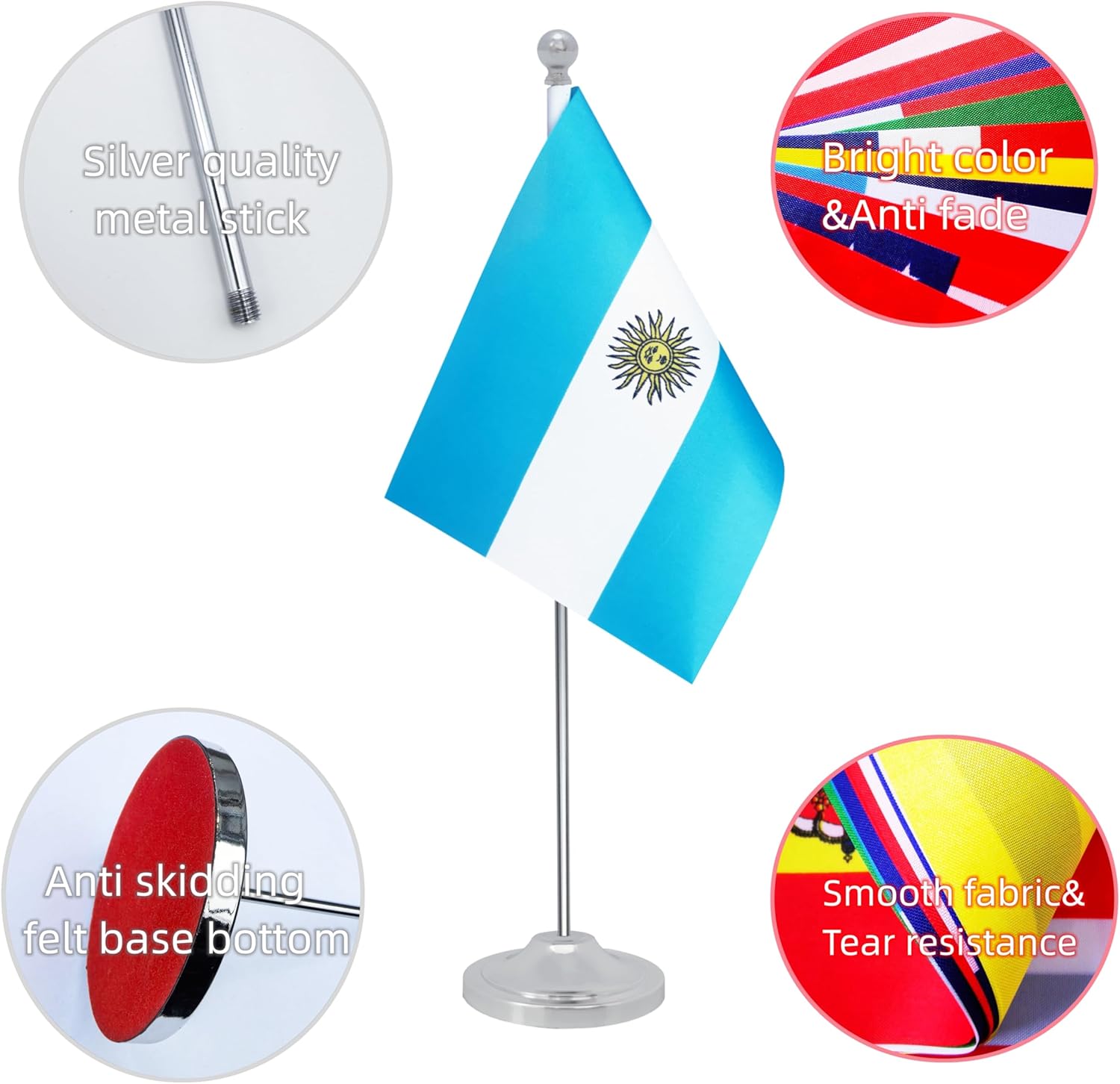Argentina Desk Flag, Argentinian Table Office Flag with Metal Pole and Stand Base, International Country Flags, Festival Event Celebration, Classroom Meeting Desktop Decor (Argentina)