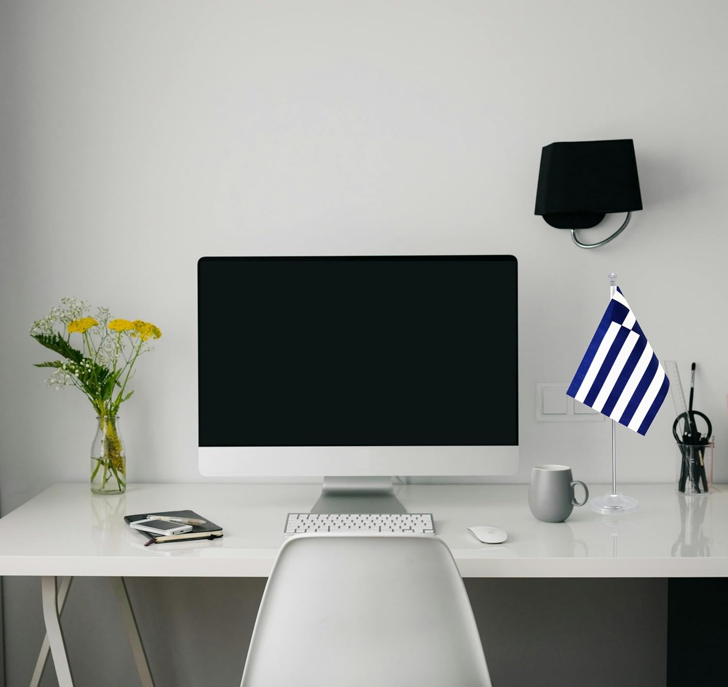 Greece Desk Flag, Greek Table Office Flag with Metal Pole and Stand Base, International Country Flags, Festival Event Celebration, Classroom Meeting Desktop Decor (Greece)