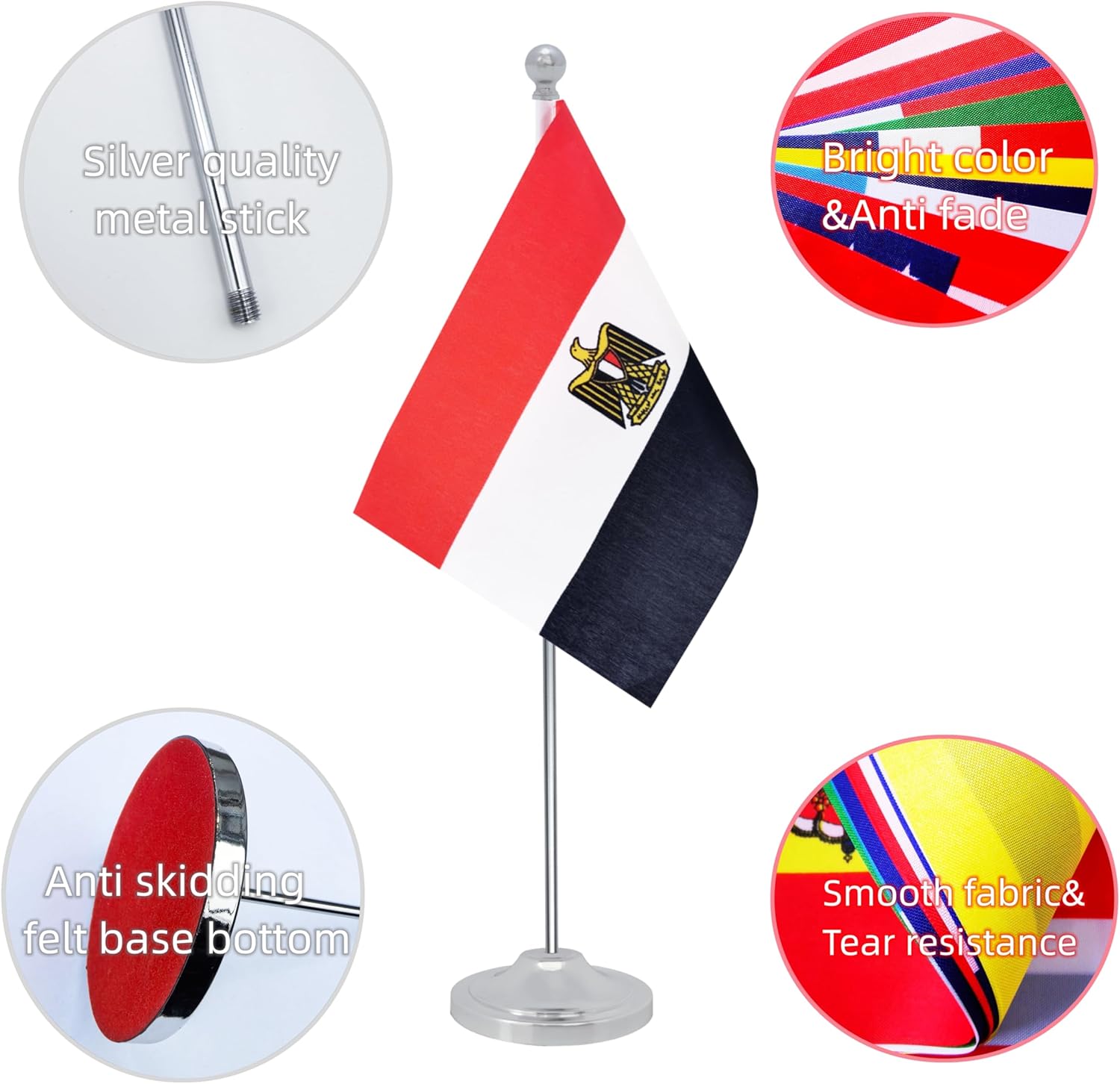 Egypt Desk Flag, Egyptian Table Office Flag with Metal Pole and Stand Base, International Country Flags, Festival Event Celebration, Classroom Meeting Desktop Decor (Egypt)