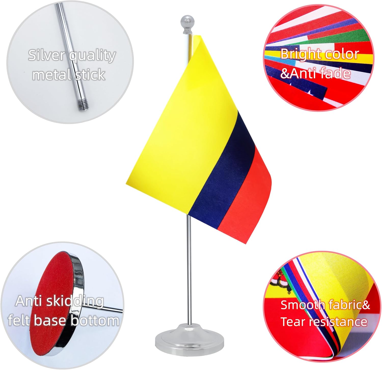 Colombia Desk Flag, Colombian Table Office Flag with Metal Pole and Stand Base, International Country Flags, Festival Event Celebration, Classroom Meeting Desktop Decor (Colombia)
