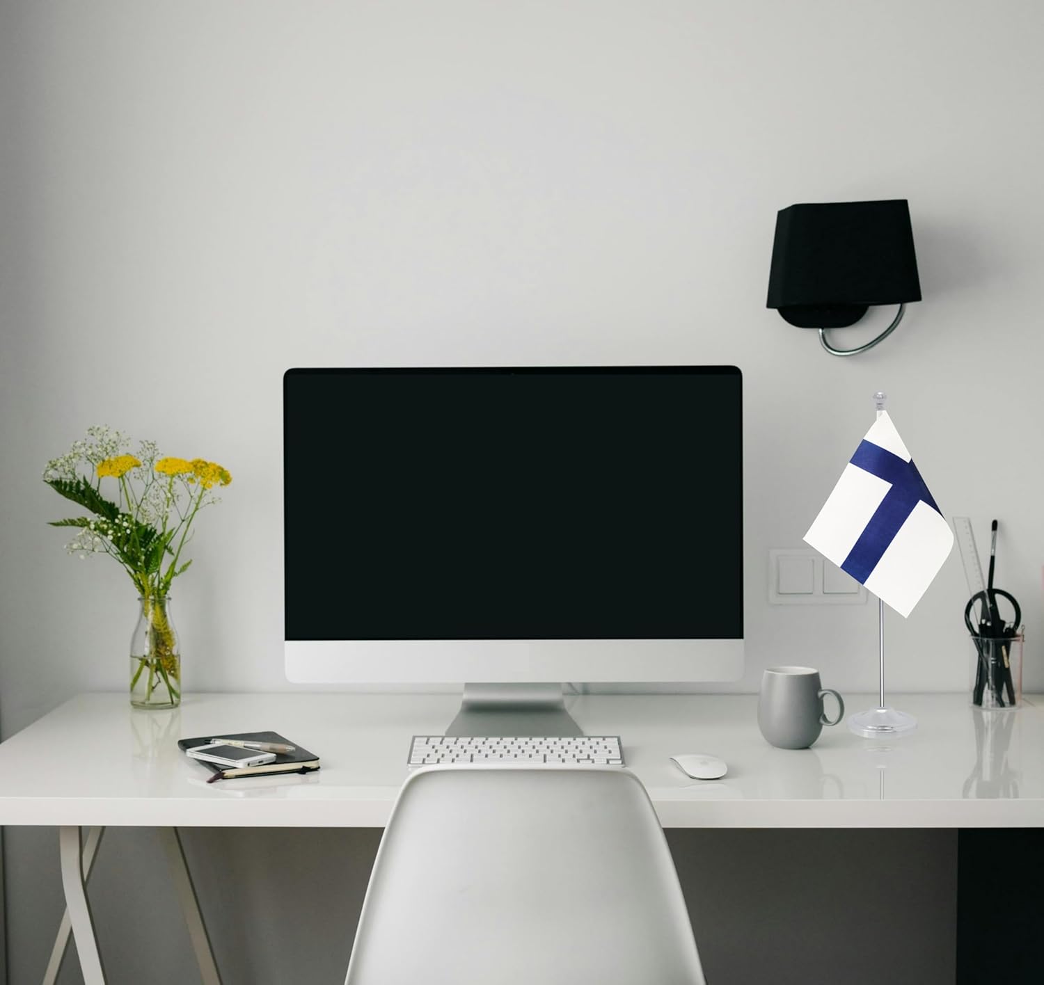 Finland Desk Flag, Finnish Table Office Flag with Metal Pole and Stand Base, International Country Flags, Festival Event Celebration, Classroom Meeting Desktop Decor (Finland)