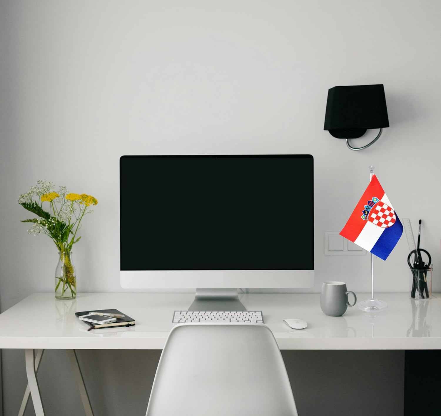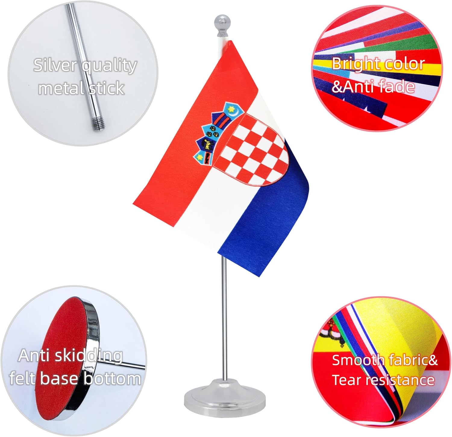 Croatia Desk Flag, Croatian Table Office Flag with Metal Pole and Stand Base, International Country Flags, Festival Event Celebration, Classroom Meeting Desktop Decor (Croatia)