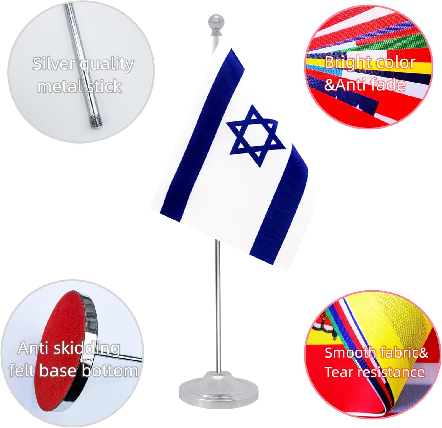 Israel Desk Flag, Israeli Table Office Flag with Metal Pole and Stand Base, International Country Flags, Festival Event Celebration, Classroom Meeting Desktop Decor (Israel)
