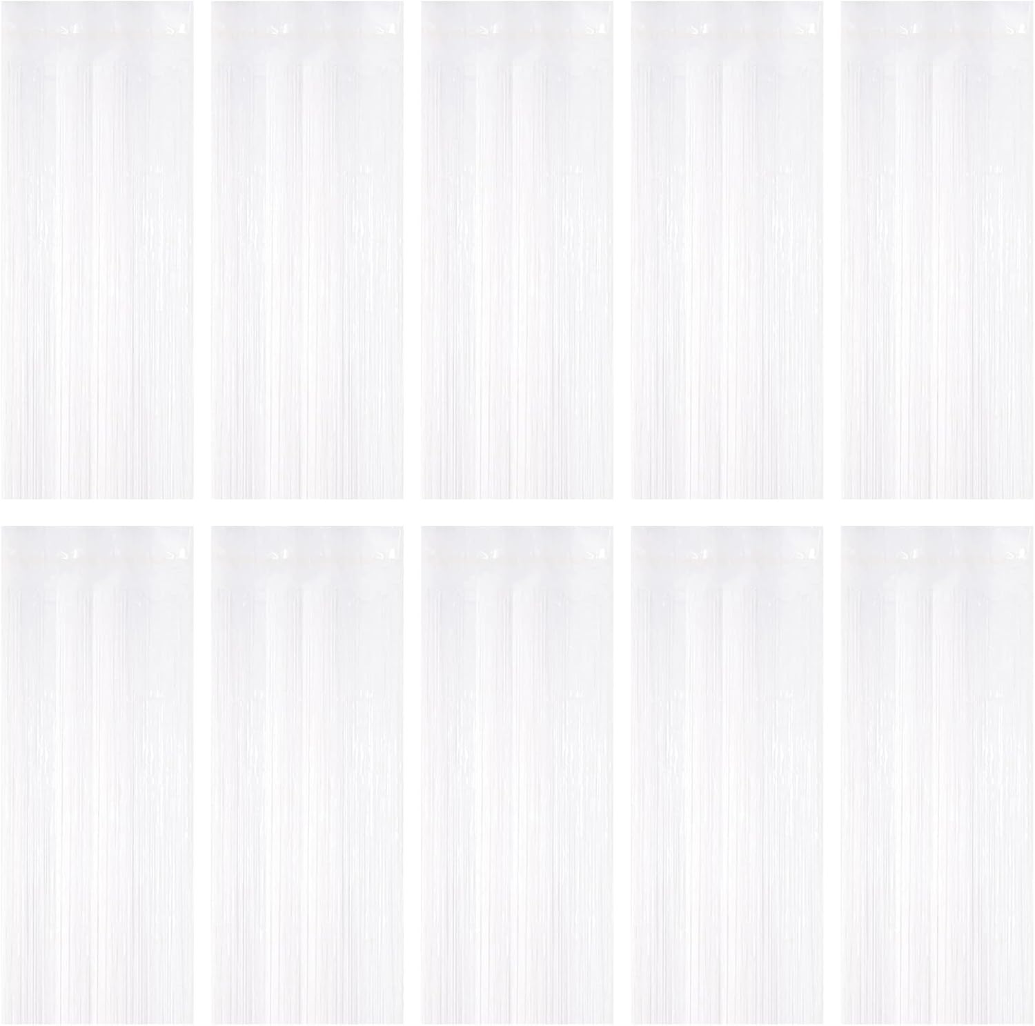 10 Pack White Foil Curtain Backdrop 3.2ft x 9.8ft Black Metallic Tinsel Foil Fringe Curtains Streamer Photo Booth Backdrop for Birthday Party Engagement Bachelorette Party Decorations (White)