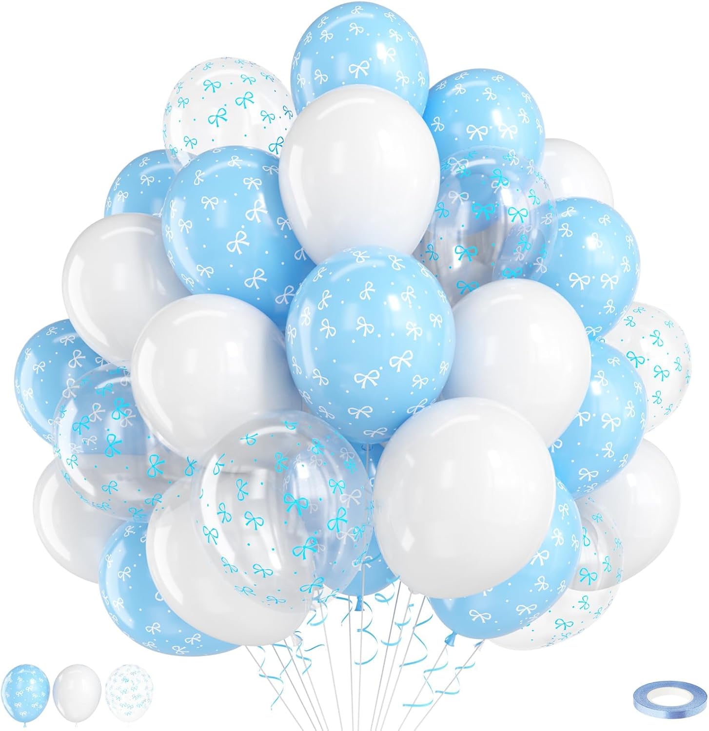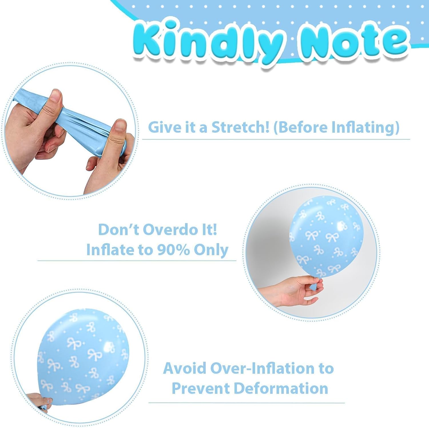 - Easy to Use: These light blue bow balloons are ideal for themed party decorations. Simply inflate them with helium to make them float, or use air to easily attach them to walls, pillars, and more. Whether you use a hand pump, electric pump, or even inflate them by mouth, these latex balloons are quick and effortless to set up, making them an ideal choice for birthday parties and other celebrations.
