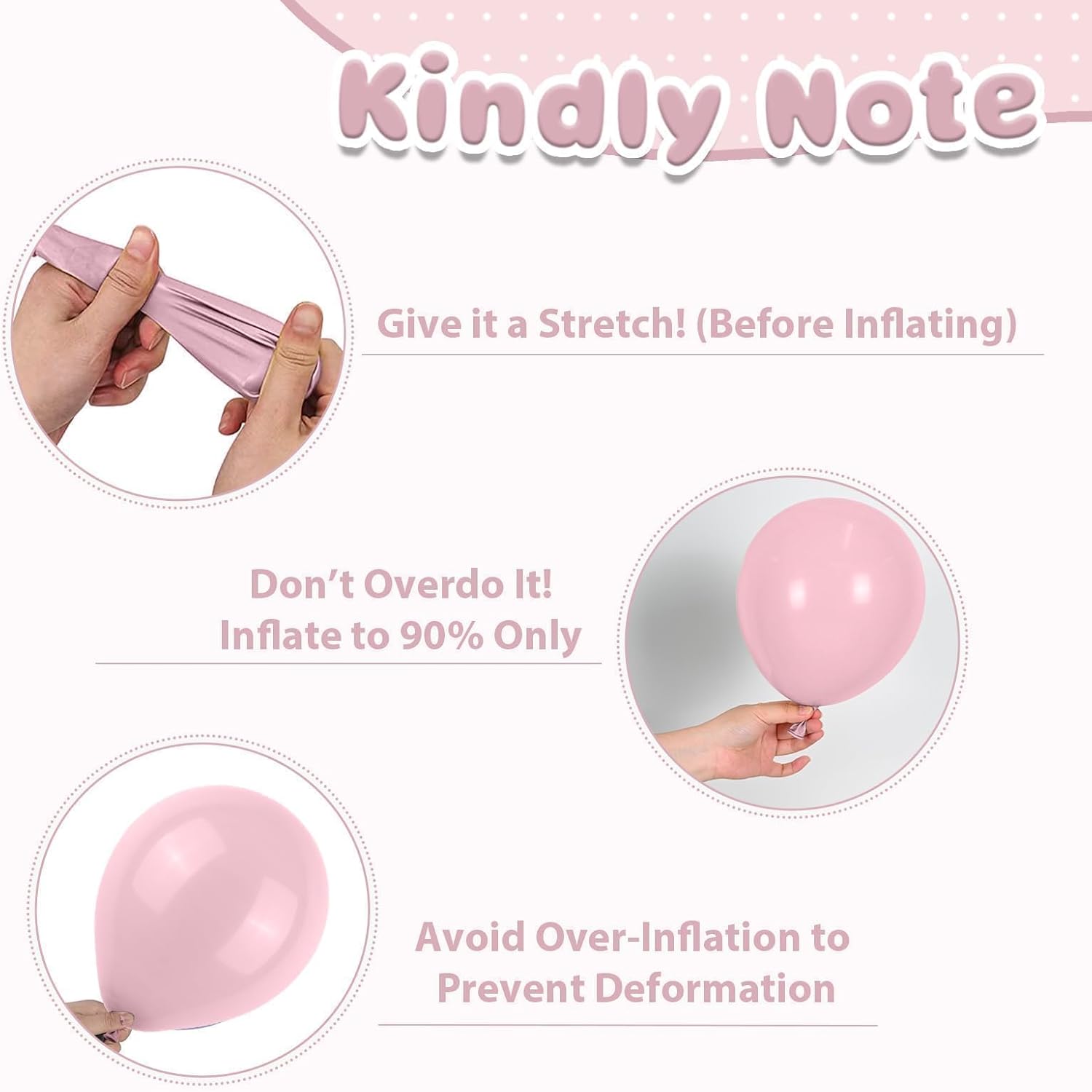 - Party-Ready Tips: Please be careful not to overfill the balloon to avoid bursting,away from sharp objects and direct sunlight to prevent damage. Please note that it is normal for 2-3 balloons out of the all to have some damage or small holes. If you have any questions or need assistance, please don't hesitate let us know.We will help you within 24 hours.