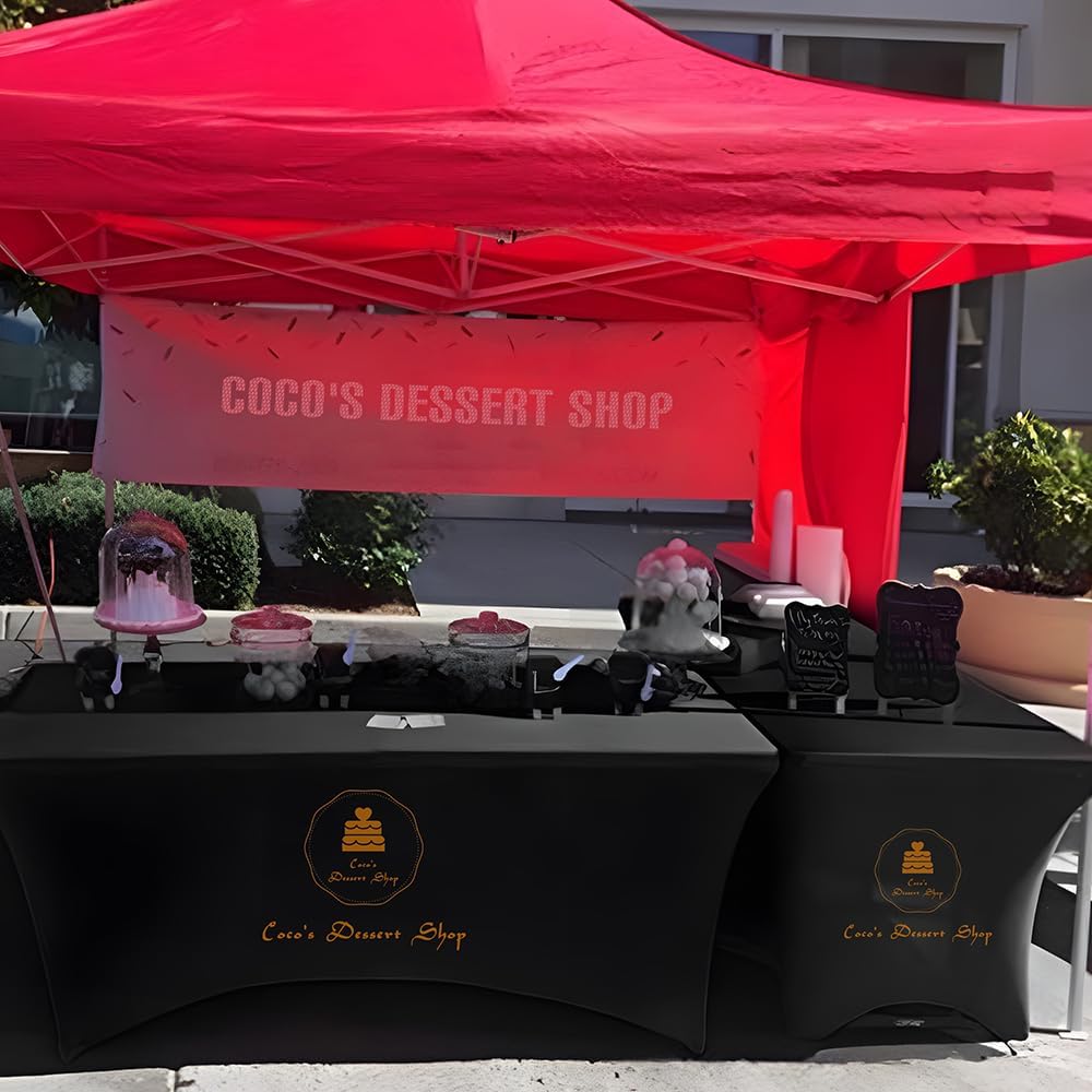 Custom Table Cloth with Business Logo 4FT 5FT 6 FT 8 FT Spandex Customized Table Cover Stretch for Tradeshow Events Birthday Wedding Anniversary Mantel Personalized Table Cloth (8FT)