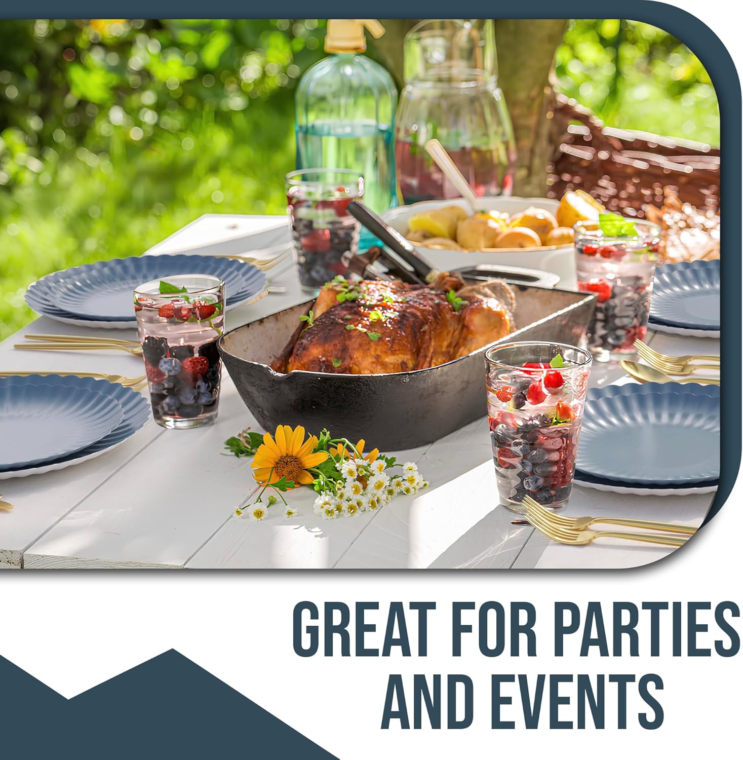- EASY CLEANUP: We had you in mind when making these affordable nice disposable plates heavy duty that can easily be cleaned up and save you the hassle of washing your dishes. Great choice for party supplies - durable large paper plates set is perfect for outdoor events - picnics and parties - cake plates disposable - birthday plates - high end disposable plates