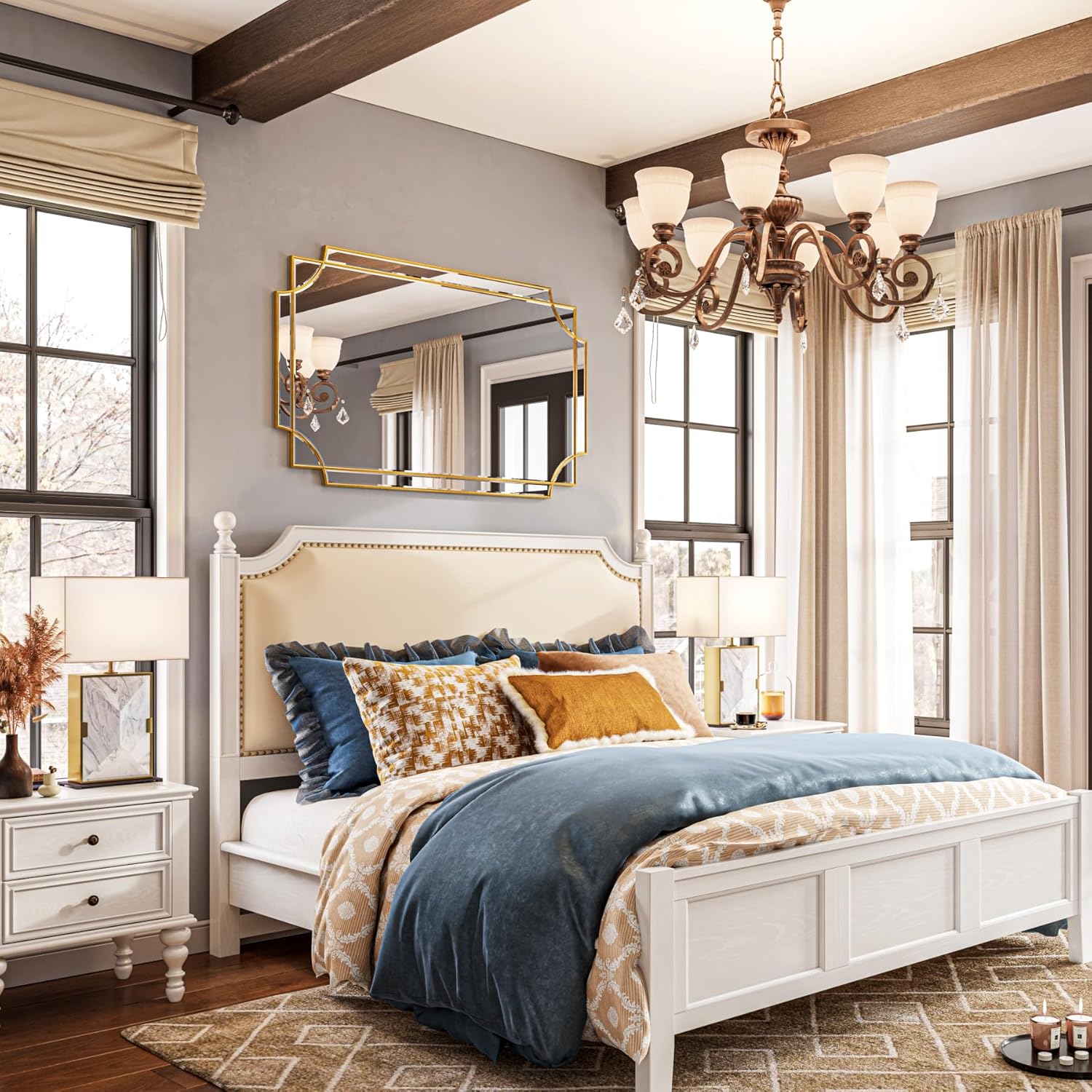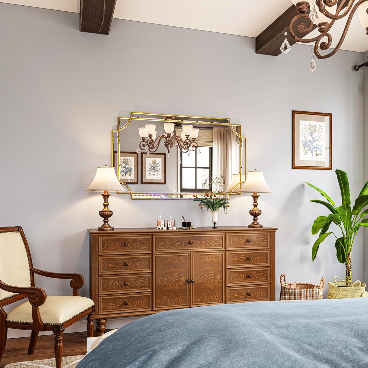 - ATTRACTIVE DESIGN. If your want some intricacies/interest to the pattern - not just a simple round or rectangle, this mirror will definitely be your perfect choice. Its sophisticated cutout corner accents along the inner and outer edges of the frame complete the look with added decorative detail. It will be a beautiful addition to any wall and an essential element in your home decor.