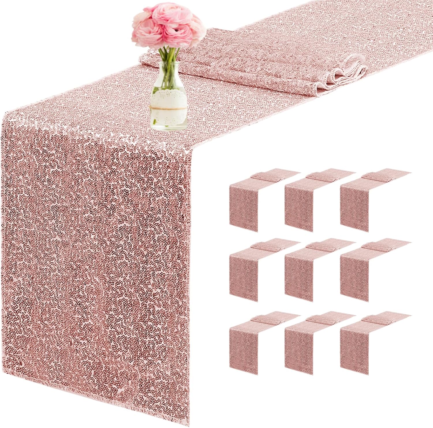 10 Packs 12 x 72 inches Sequin Table Runner, Rose Gold Glitter Table Runner for Birthday Party Supplies Wedding Engagement Baby Shower Holiday Celebration Event Decorations