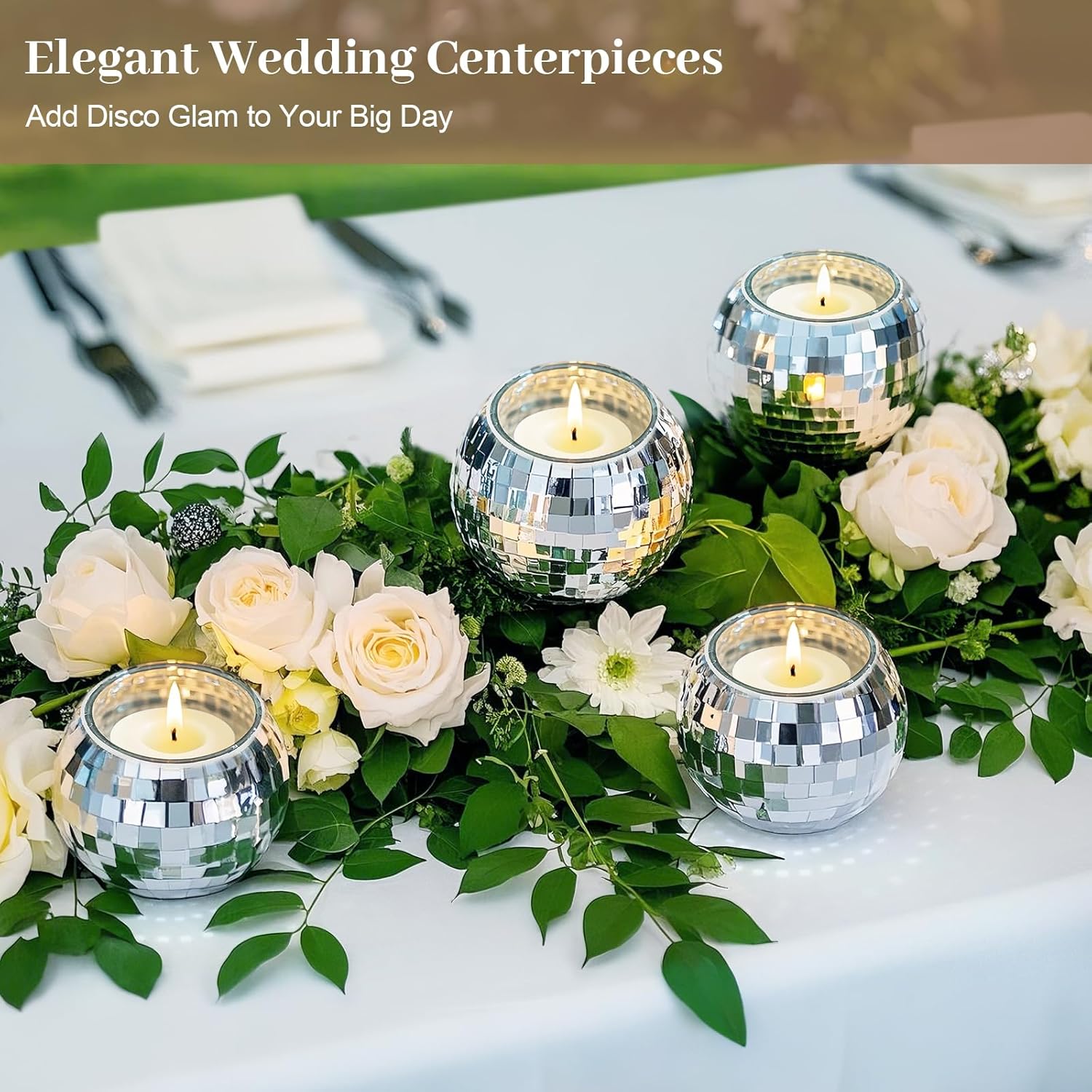- Premium Quality: Made by skilled craftsmen using high-quality cement and shatterproof mirrors, these mirror ball decors resist heat and scratches. The sturdy and smooth base ensures stability and safety when the votive candles burn