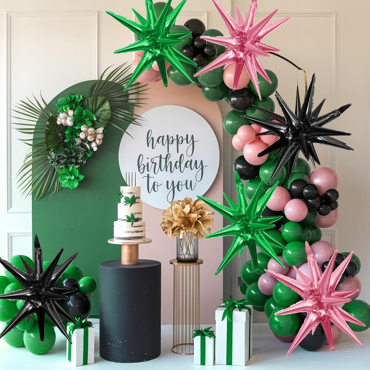 - Widely Application:Our black green pink star balloon set are great for birthday,new year,anniversaries,graduation,baby shower,opening events,engagement,disco party and all kinds of theme party,can be decorated indoors or outdoors,great party decorations choice!