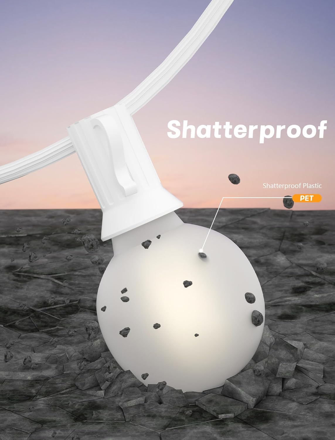- Shatterproof Safety Design: Outdoor Globe Christmas lights are made of PC material to ensure the safety of homes with children or pets. White lights string outdoor are ideal for weddings, parties or cozy backyard gatherings