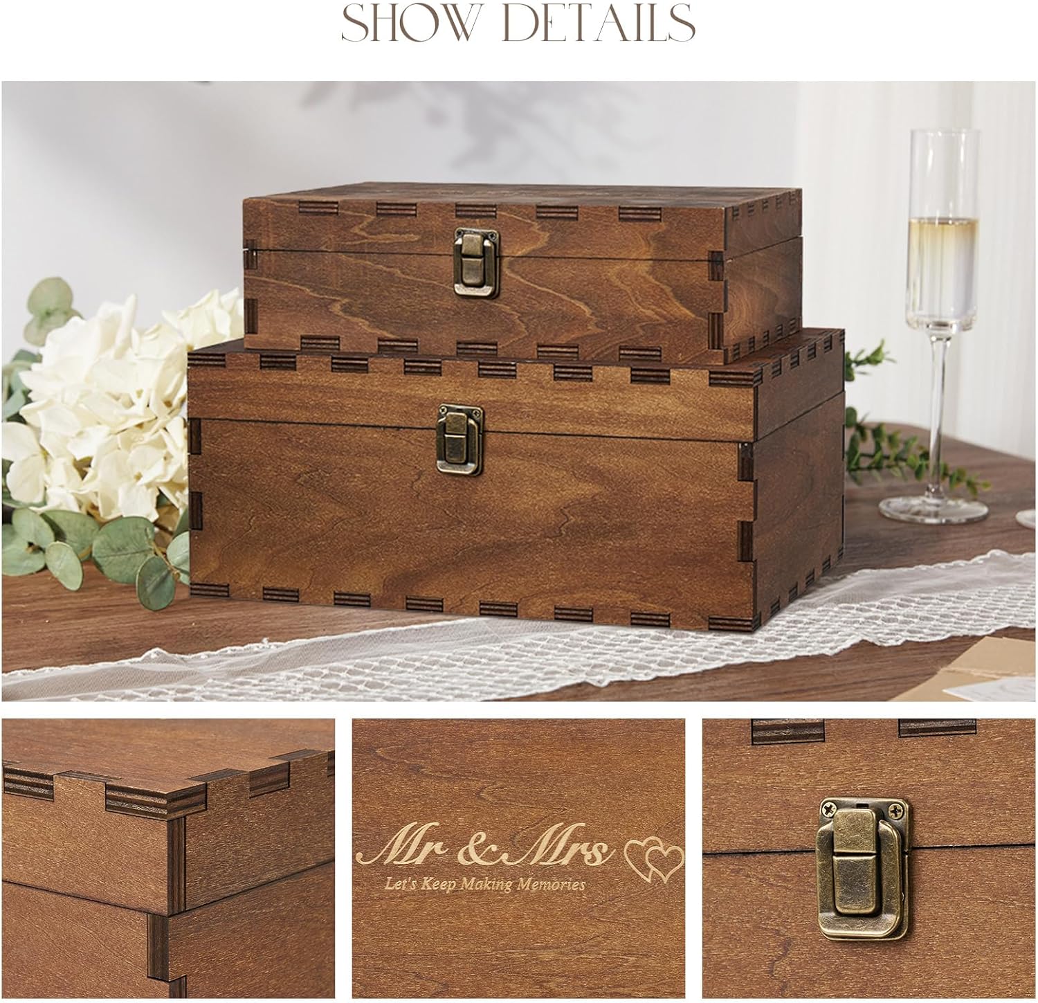 - Unique Design: Engraved "Mr & Mrs" on the outside lid, Smooth 90 degree vintage hinges lock the lid in an upright position, making it easier for you to store and retrieve items. A durable latch for security. Our beautifully wedding memory box is a sweet way to share your love