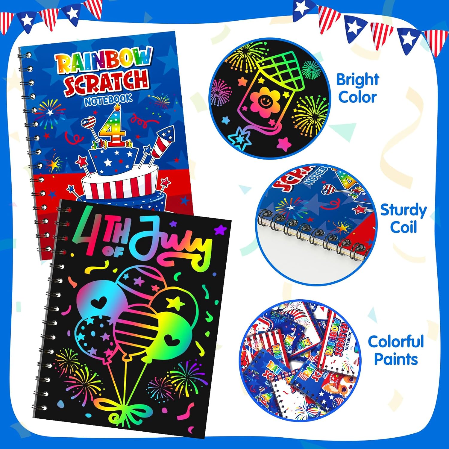 - Perfect 4th of July Gift for Kids - Maybe you are still considering 4th of July gifts or birthday gifts for kids, these rainbow scratch notebooks great for kids birthday party favors, school classroom rewards, carnival prizes, 4th of July, Independence Day party, goodie bag fillers, family fun days, road trips. This fidget toys set is the perfect gift for boys and girls.