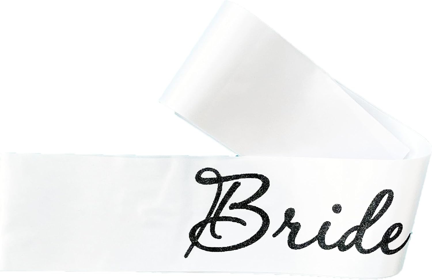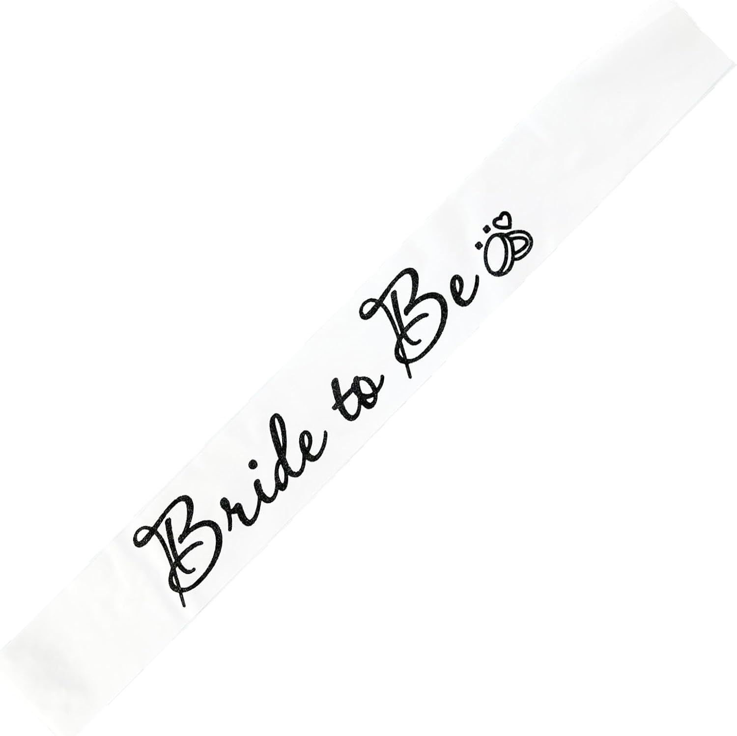 White Bride to Be Sash for Bridal Shower Bachelorette Party Wedding Hen Party Decorations Engagement Gifts Favors Miss to Mrs Sash with Glitter Letter Black