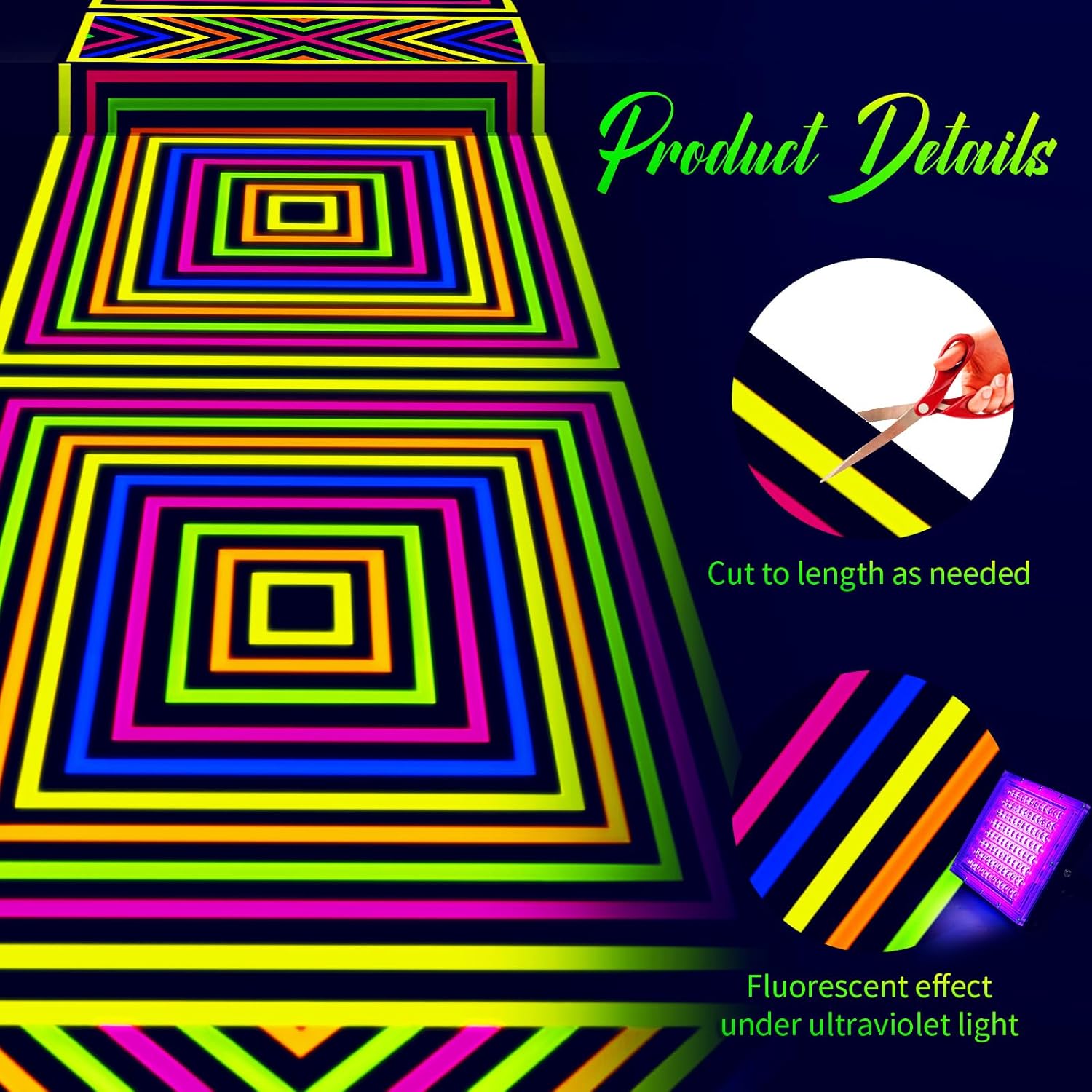 - Wide Application: the colorful carpet runner may be utilized in a variety of situations, including the neon theme party, vintage 80s 90s themed party, birthday party, glow in the dark themed party, carnivals, and stage performances, illuminating the night and dancing