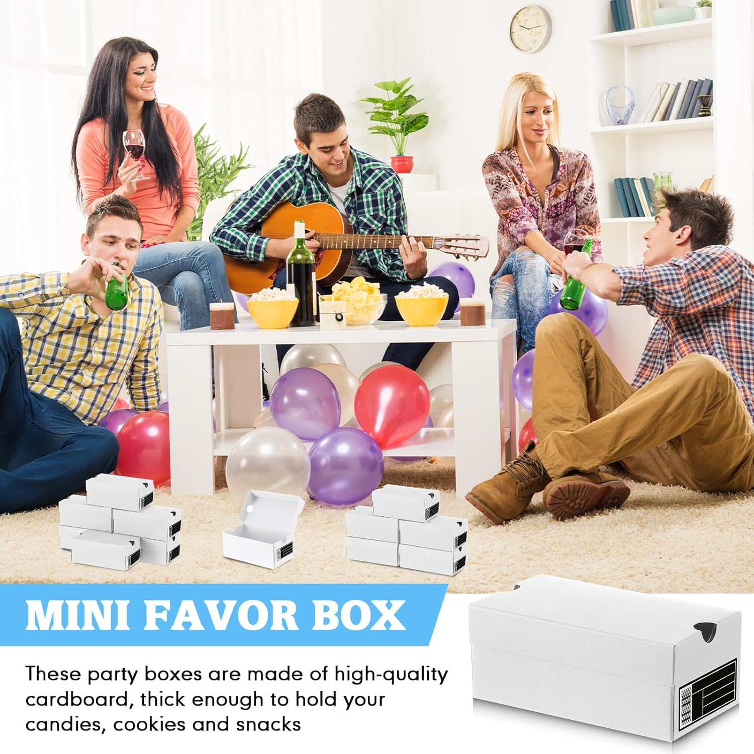 - Package Includes: 12 pieces of small gift boxes (measuring at 4.72 x 2.56 x 1.97 inch), 12 pieces of white adhesive stickers, and 100 pieces of clear adhesive dots, suitable for holding some food, such as candies, small cookies, snacks, gifts or small toys, etc., so that your decorations stand out at the party