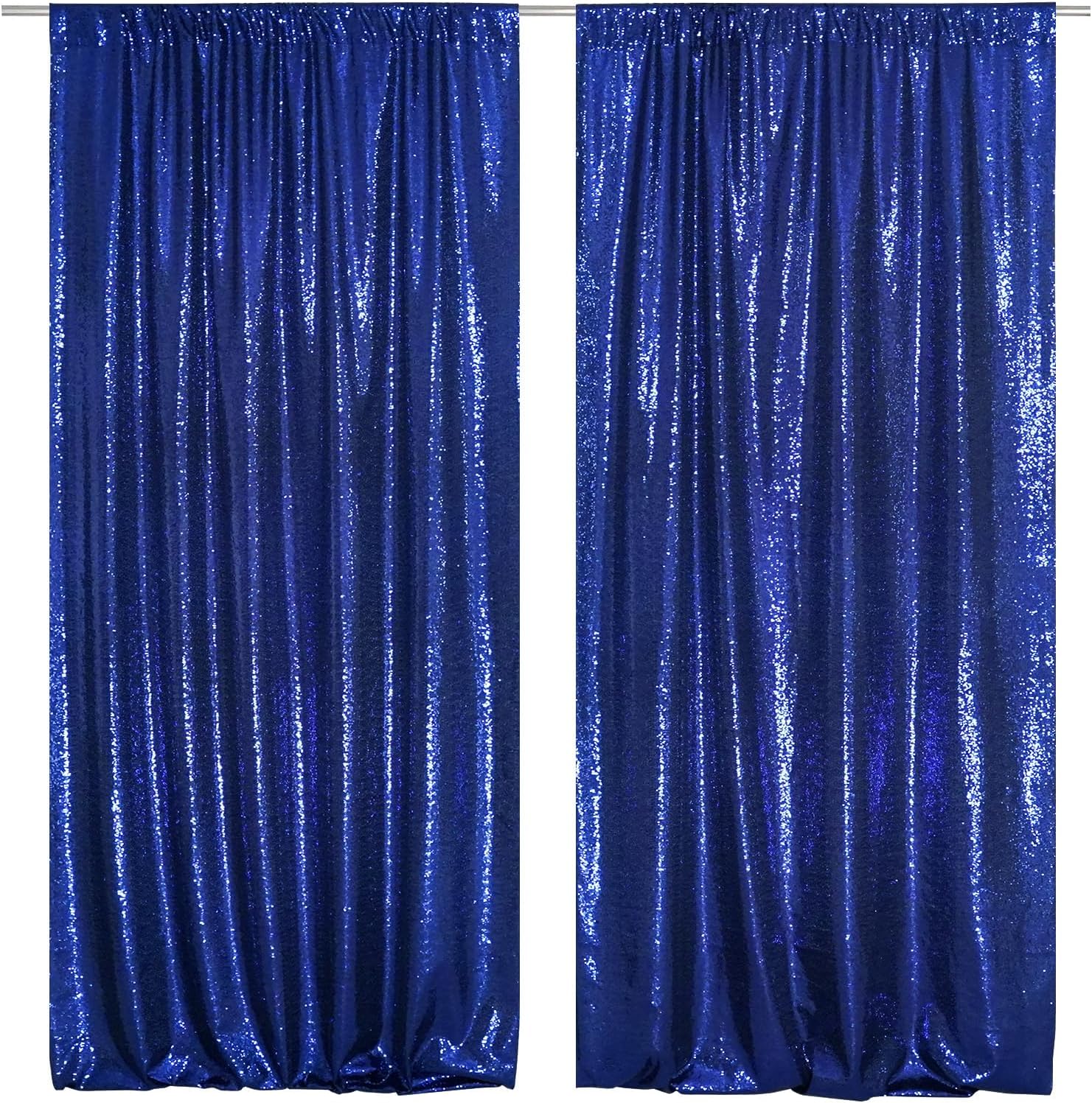 SquarePie Sequin Backdrop Curtain 8FT x 10FT Navy Blue Satin Backing Fabric Photography Background for Wedding Patry 4FT x 10FT 2 Panels