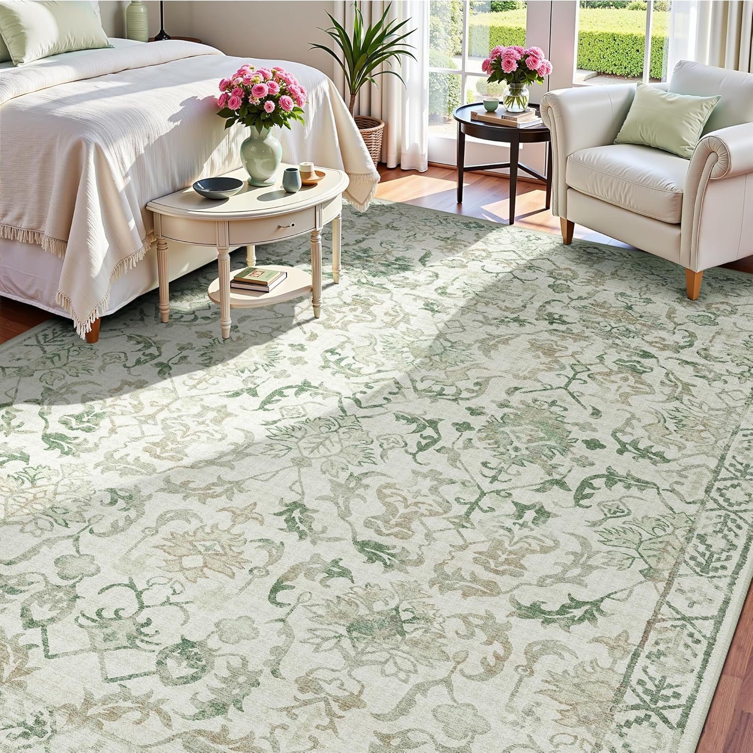 Deerly Green Area Rugs 9x12 for Living Room Soft Non-Slip, Large Bedroom Rug Vintage Dining Room Rug Tribal Farmhouse Carpet for Dining Room Office Green