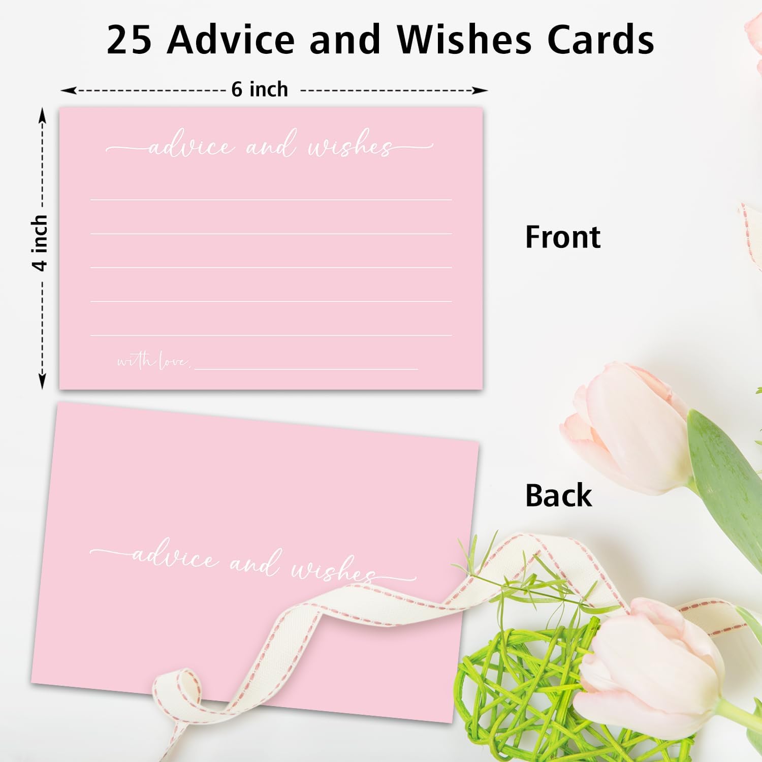 Pink Advice and Wishes Card, Advice Cards for The Bride and Groom, Bridal Shower,Wedding or Baby Shower, Birthday, Graduation, Retirement, Guestbook - 25 Cards -07