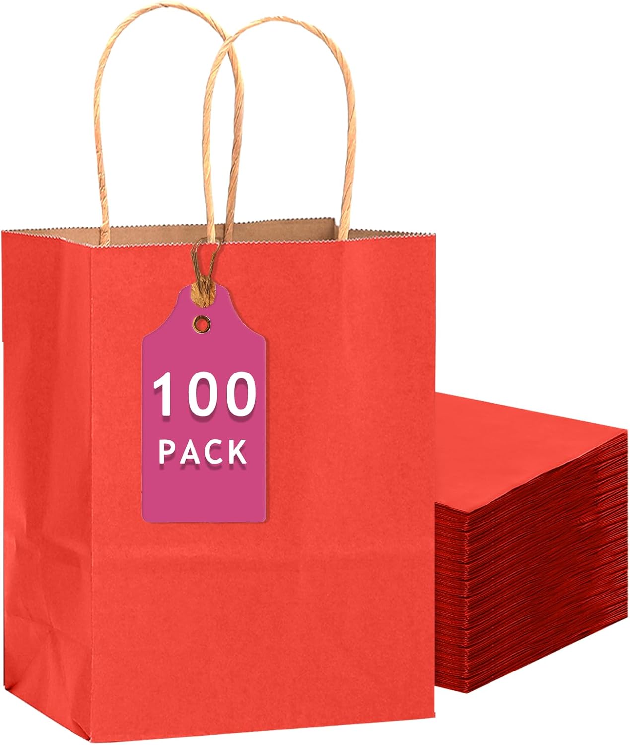 - Color & Size:Kraft Red Party Birthday Shopping Bag/ 100Pcs with 13x10.3x4.6inch,Large Size