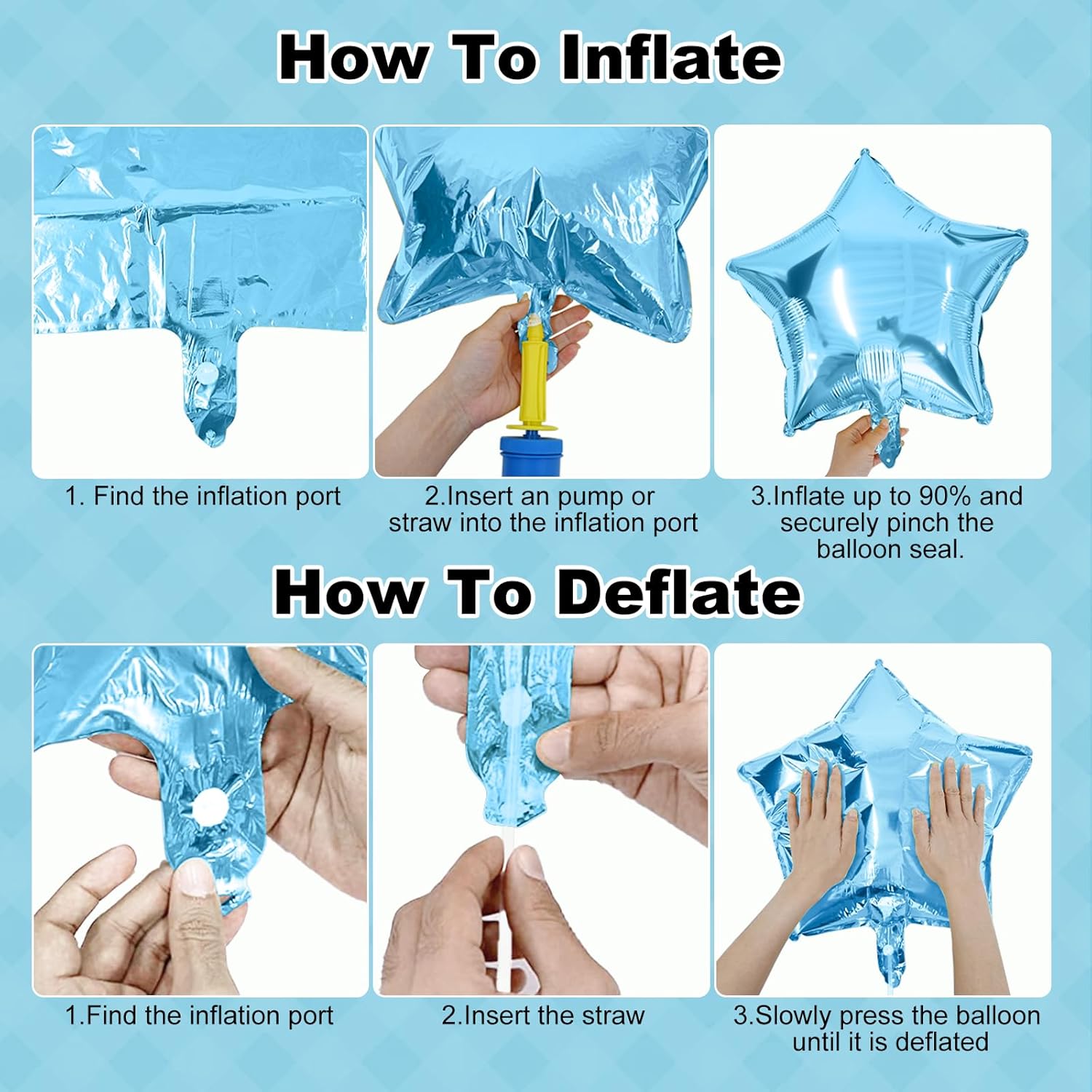 - 💝♻️【Rich & Reusable 18" Foil Balloons】: The rich foil balloons enhance the design sense of the decoration. They can be reused according to the instructions, bring a festive and fun atmosphere to any occasion, time and time again! 🎈🎉(Please place the hand pump under the transparent protective film at the balloon inflation port to inflate. After the activity, insert the attached straw under the protective film and gently press to deflate it for reuse.)