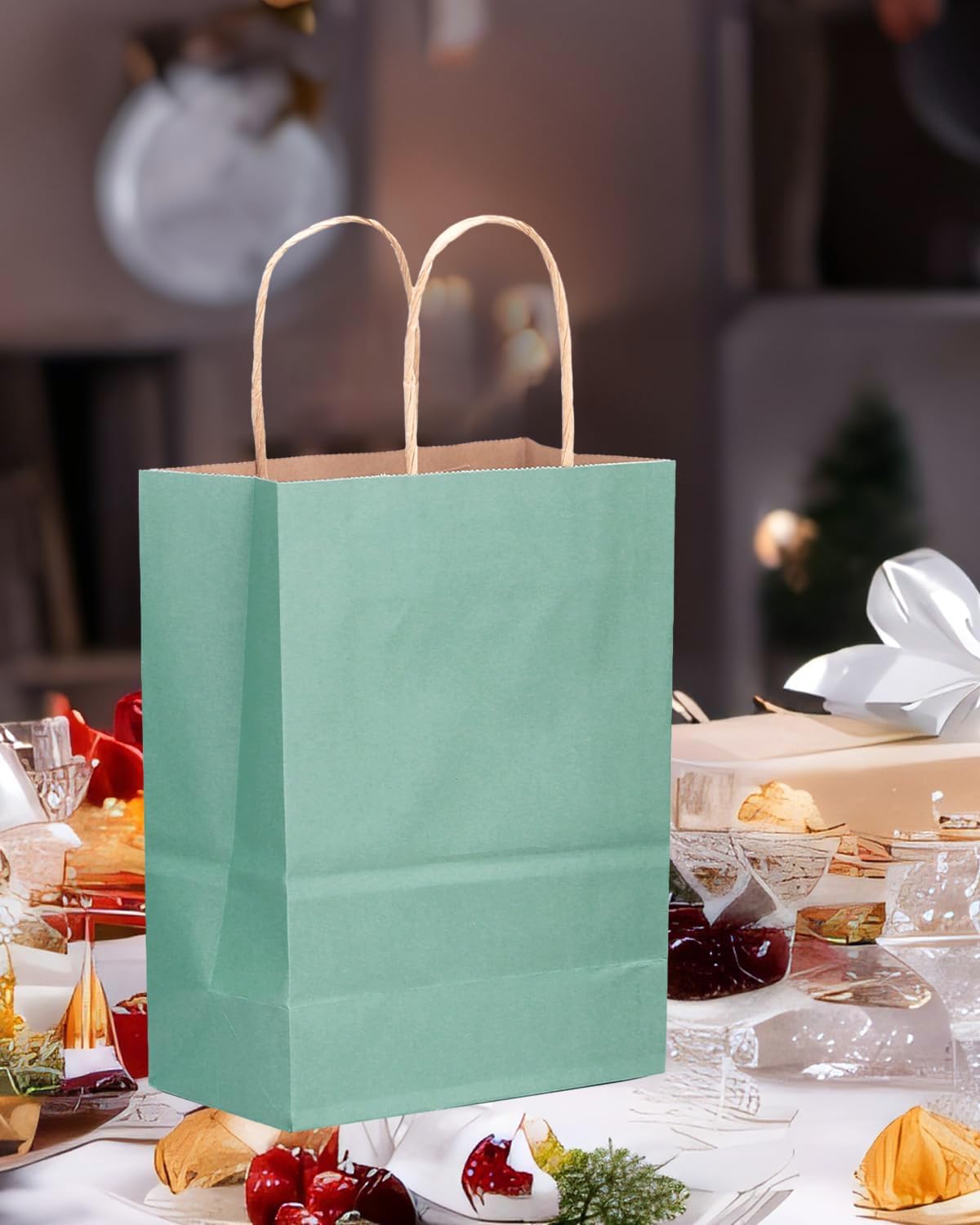 - Color & Size:Kraft Light Blue Party Birthday Shopping Bag/ 100Pcs with 13x10.3x4.6inch,Large Size