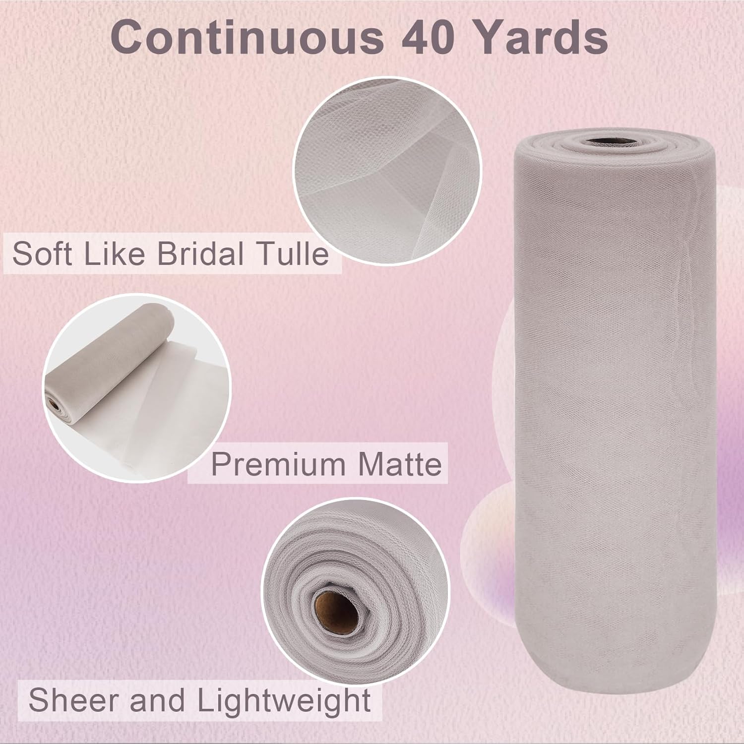 - Premium Fabric Tulle Bolt: Matte tulle is made of polyester. Flexible diamond mesh, tightly woven, strong construction. After repeated use, fabric tulle roll can still maintain its bright color.