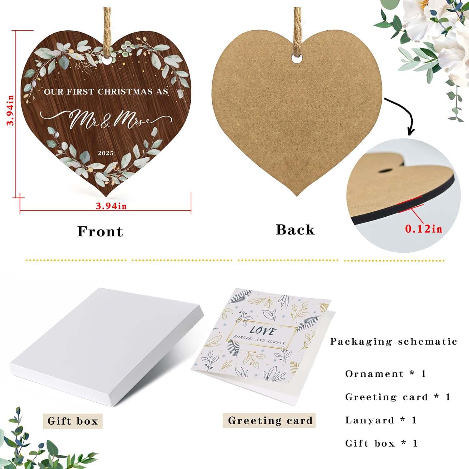 - First Christmas Hanging Ornament for Newlyweds: wood print design, sublimation heat treatment so that the pattern is permanently printed on the hanging ornament, comes with a lanyard, you can easily hang these ornaments on the Christmas tree, a perfect decoration for the Christmas tree, doors, windows, walls and anywhere you want to decorate!