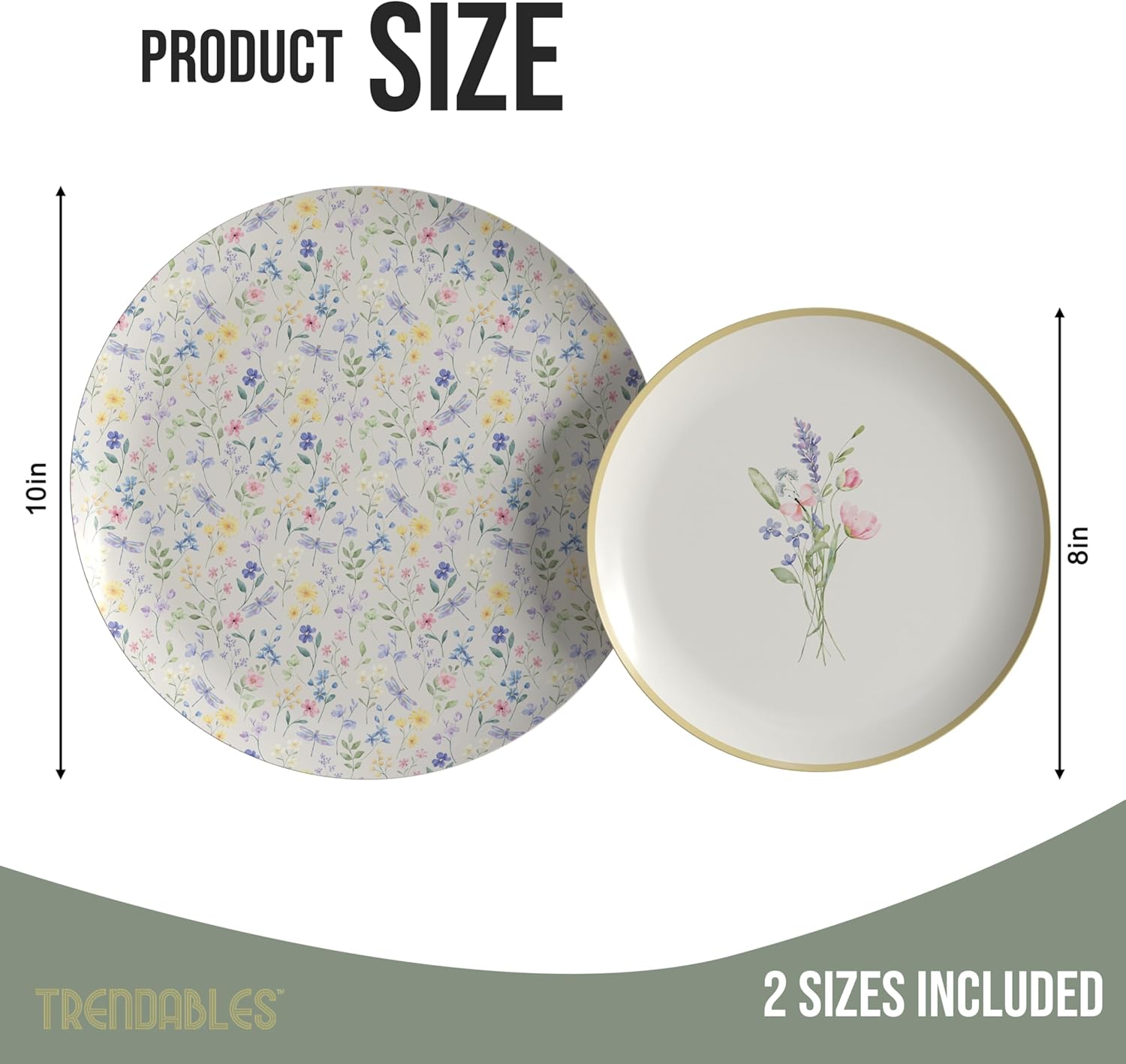 Trendables Heavy Duty Paper Plates Set For 16 Guests - 16 Each Of 8-inch And 10-inch Disposable Plates For Party - Fancy 32 Piece Dinnerware Set For All Occasions | Floral Design, Charm