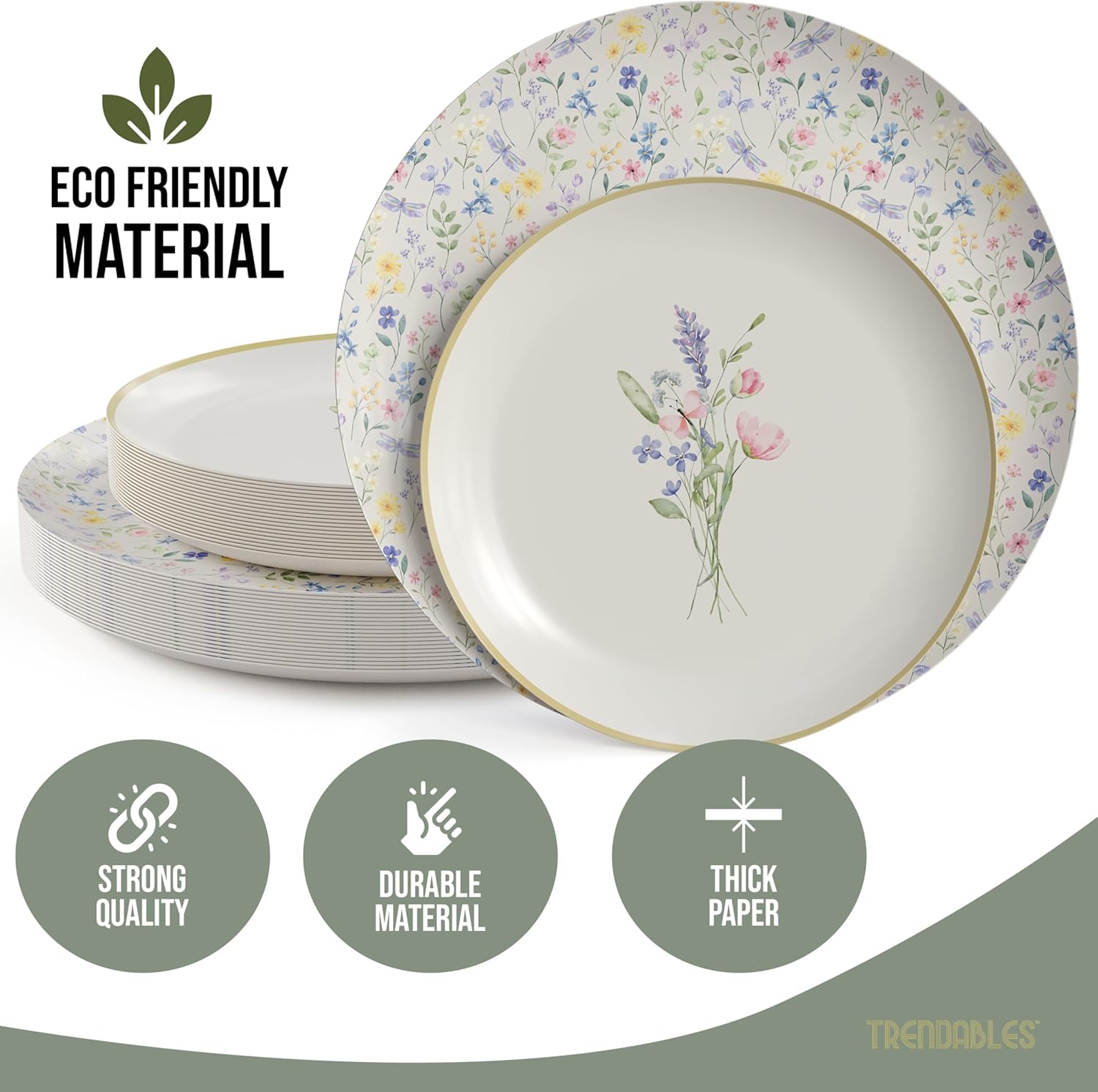 Trendables Heavy Duty Paper Plates Set For 32 Guests - 32 Each Of 8-inch And 10-inch Disposable Plates For Party - Fancy 64 Piece Dinnerware Set For All Occasions | Floral Design, Charm