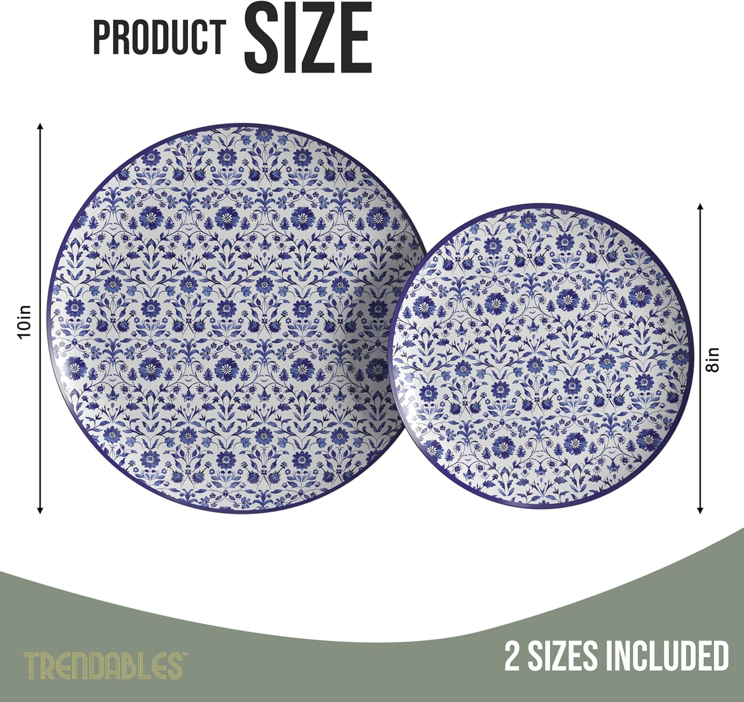 - INCLUDES: Charger plates set comes with 32 pcs of 8 inch paper plates appetizer plates and 32 pcs of paper plates 10 inch dinner plates disposable paper plate set that will impress your guests - our elegant disposable dinnerware set will add a touch luxury to your next event or dinner party - christmas plates disposable christmas paper plates holiday paper plates