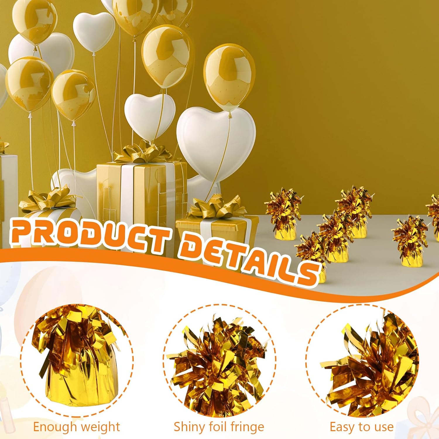 - Easy to Use: Compact and easy to use, these weights fit seamlessly into your party setup. Simply attach the string or ribbon of your balloon to the weight, and enjoy worry decoration, ideal for coordinating with other party decorations