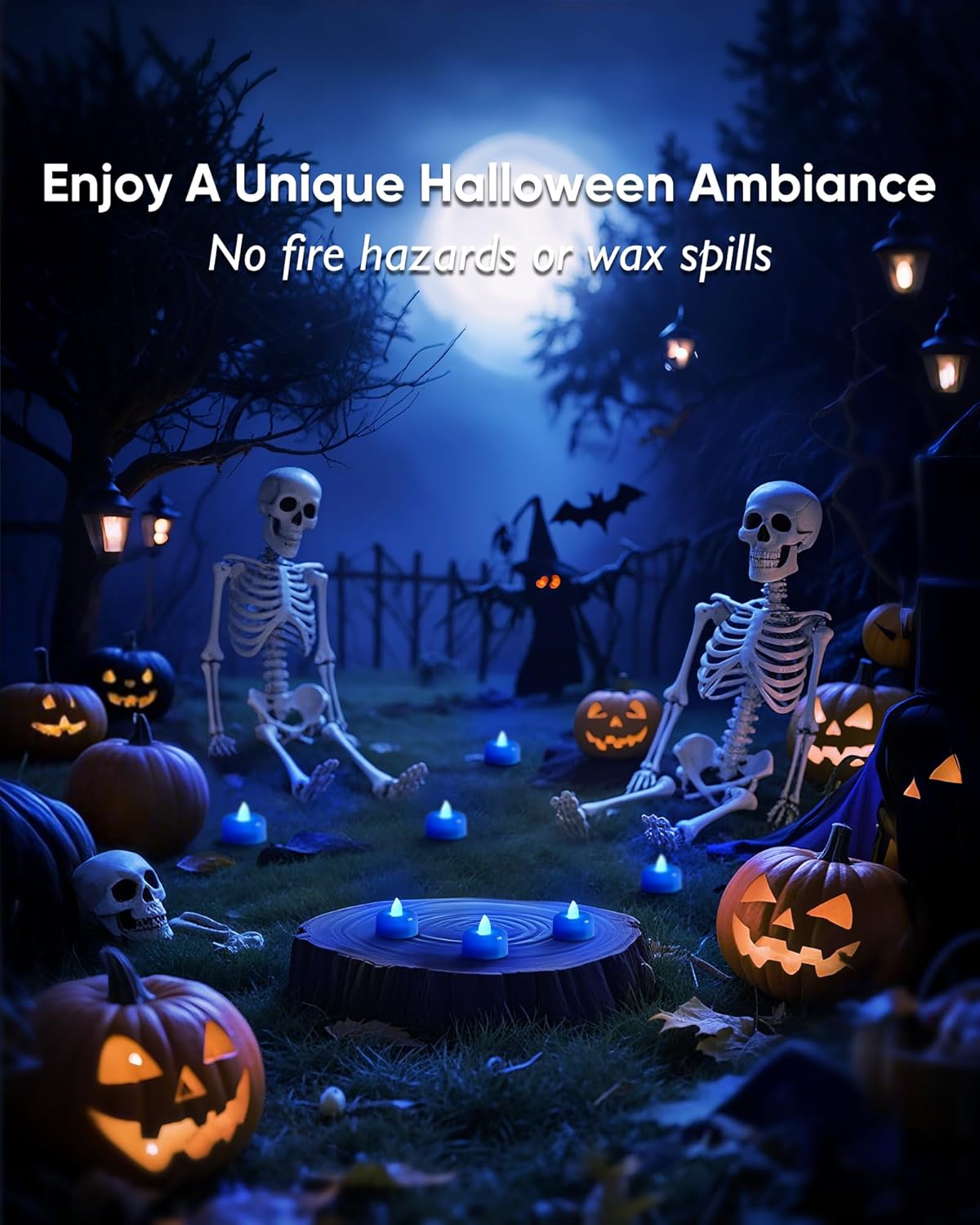 - Create Atmosphere: Create a magical atmosphere with our blue flameless candles! The charming tea lights add a touch of mystery to your party or holiday gathering. Enjoy the realistic wax-like appearance and feel that will leave you amazed