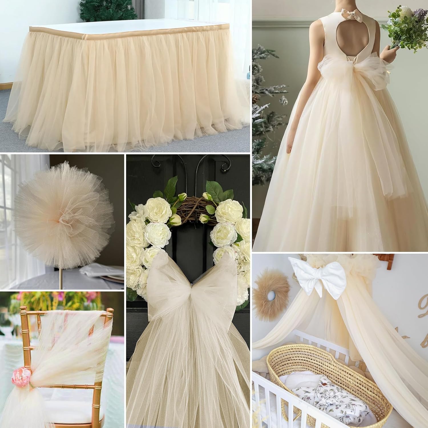 Honey Beige Tulle Fabric Rolls 54 Inch by 40 Yards Tulle Bolt Spool for Wedding Decorations DIY Tutu Baby Shower Table Skirt Ceiling Decor Birthday Party Craft Supplies