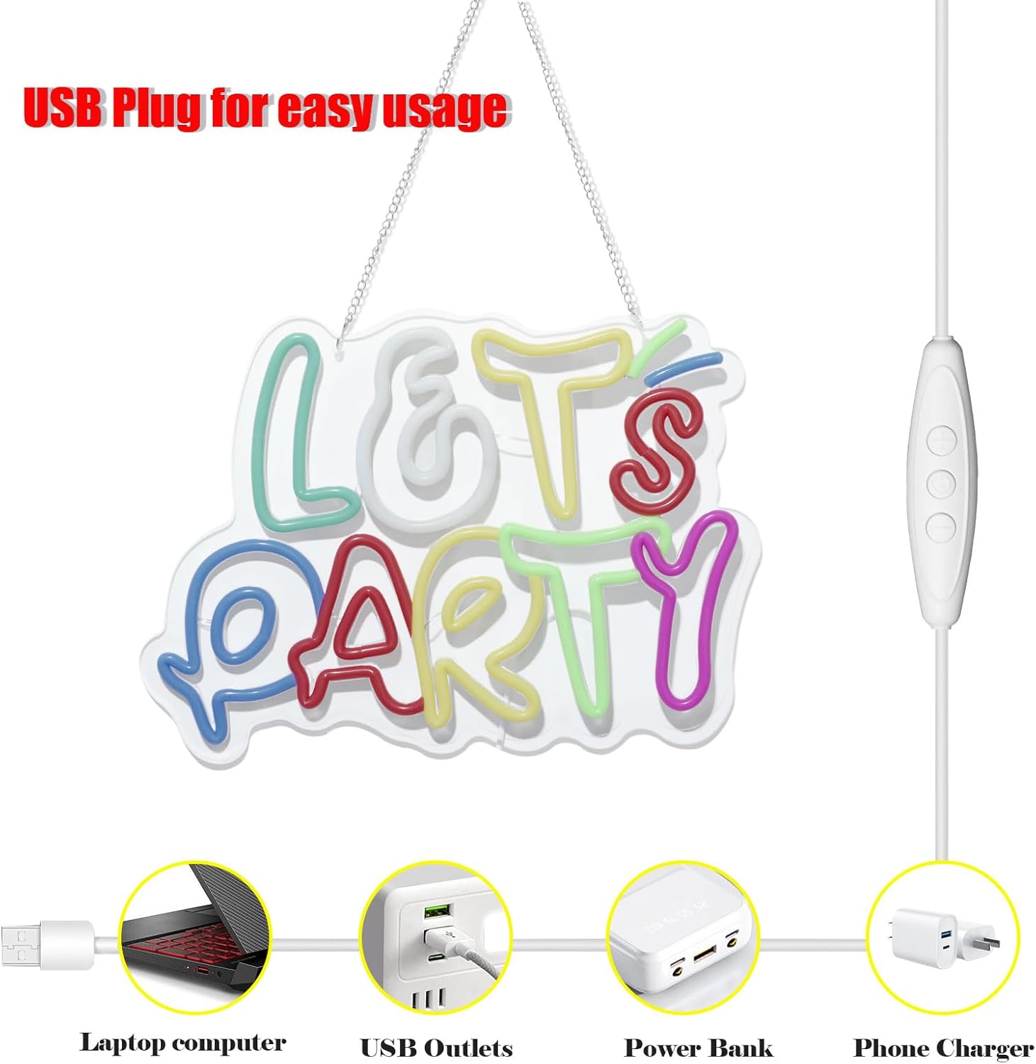 Let's Party Neon Sign for Wall Decor with Dimmable and USB Power,Multicolor LED Light up Sign,Party signs Perfect for Birthday,Bachelorette Parties,Game Room,Bar Lighting,gifts,size:14.17*10.32In