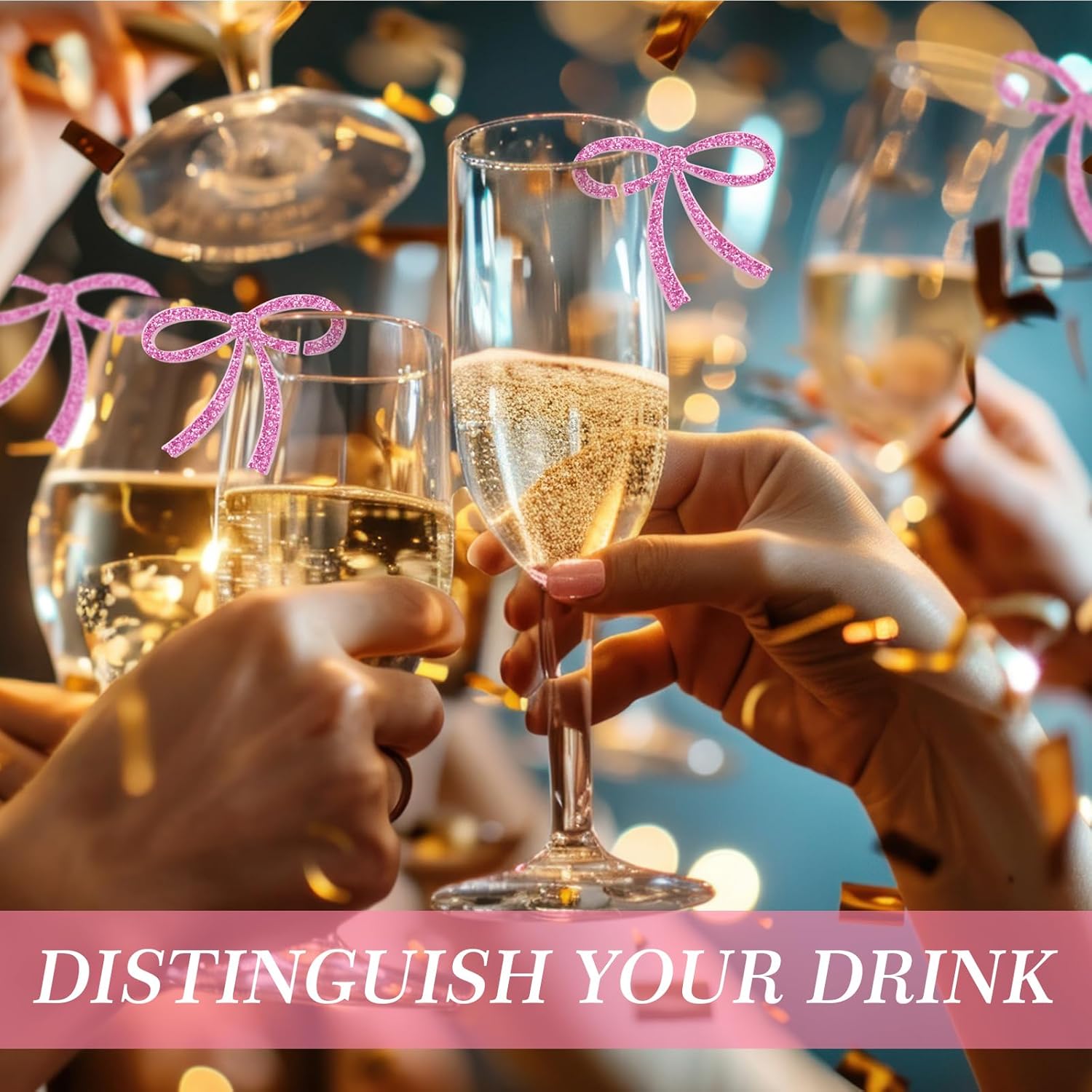 - Stylish Drink Accessory: the glittery pink bows drink markers are the suitable accessory to elevate the aesthetic of any party setting; Whether it's the Tying the Knot Bachelorette Party, Coquette Birthday Party or the Girly Ribbon Party, this stylish product seamlessly adds a tasteful touch to your gathering