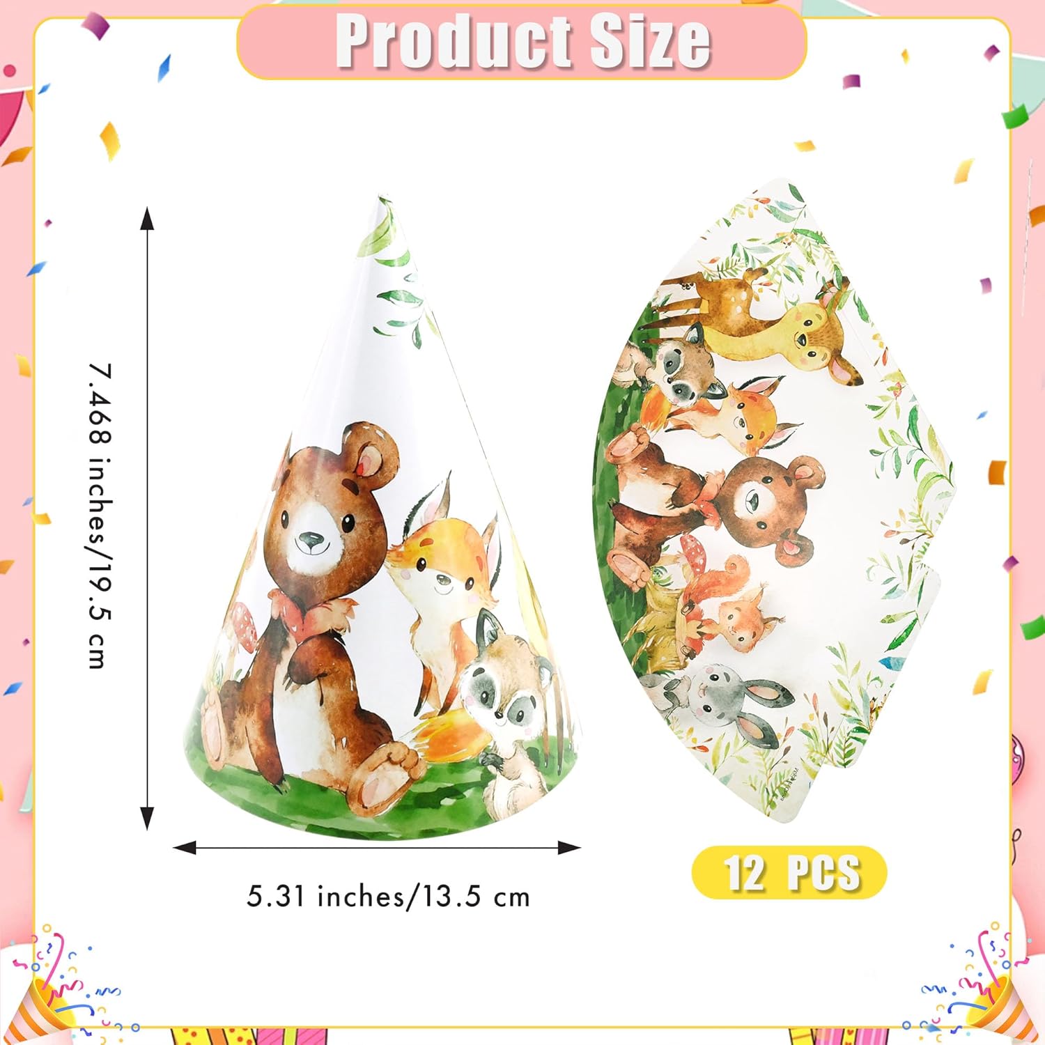 - π΄[12 PCS Value Pack] You will receive 12 assorted forest birthday hats. Large quantity, bright colors. Make your party wonderful and suitable for 12 people to enjoy a pleasant party time.