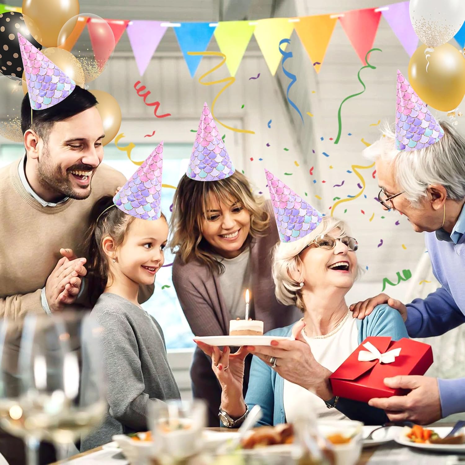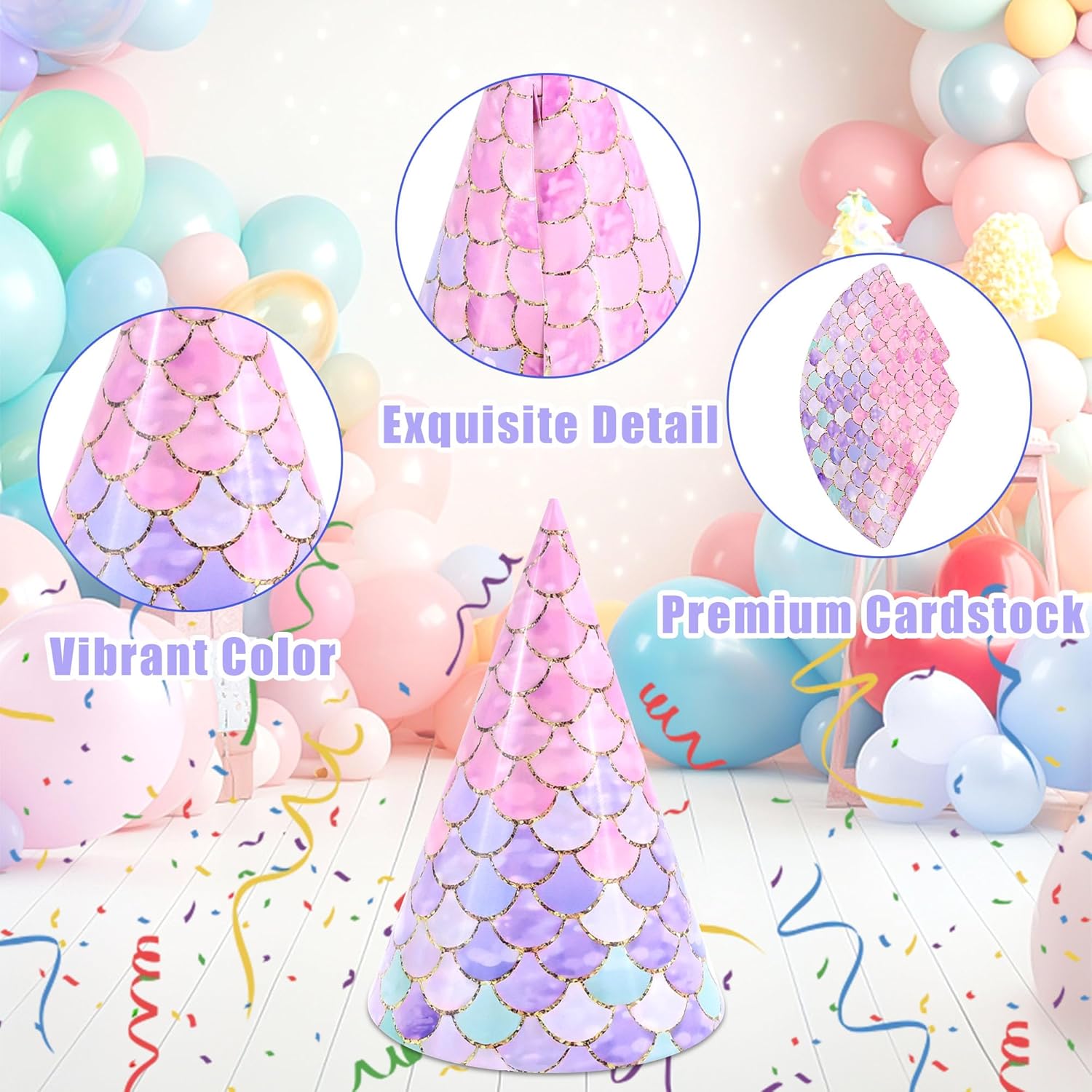 - πͺΌ[Great Quality] Birthday party hats are made of premium quality cardboard. Light weight will not add burden to your head. Perfect accessories to create great mermaid party time and memories!