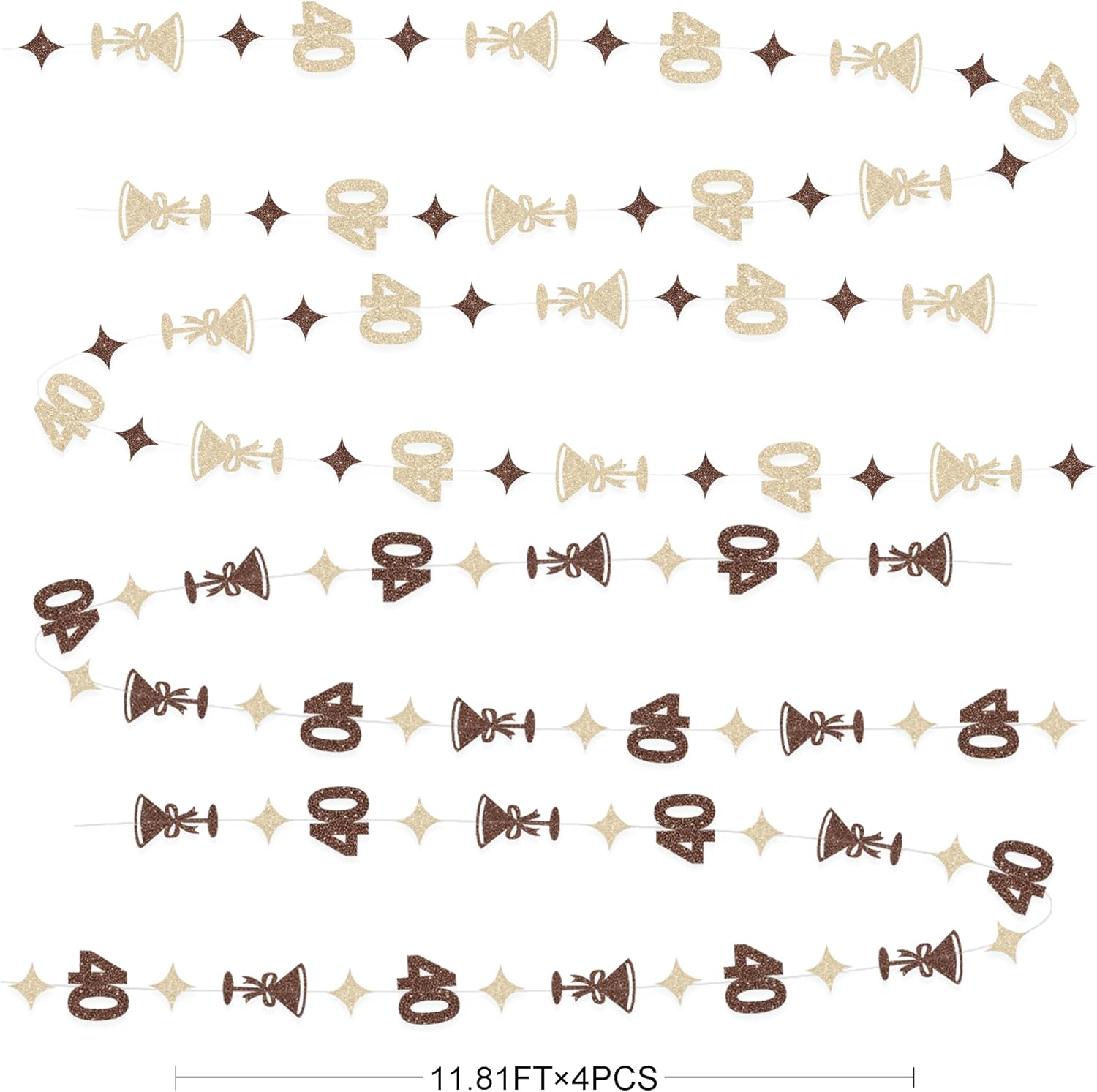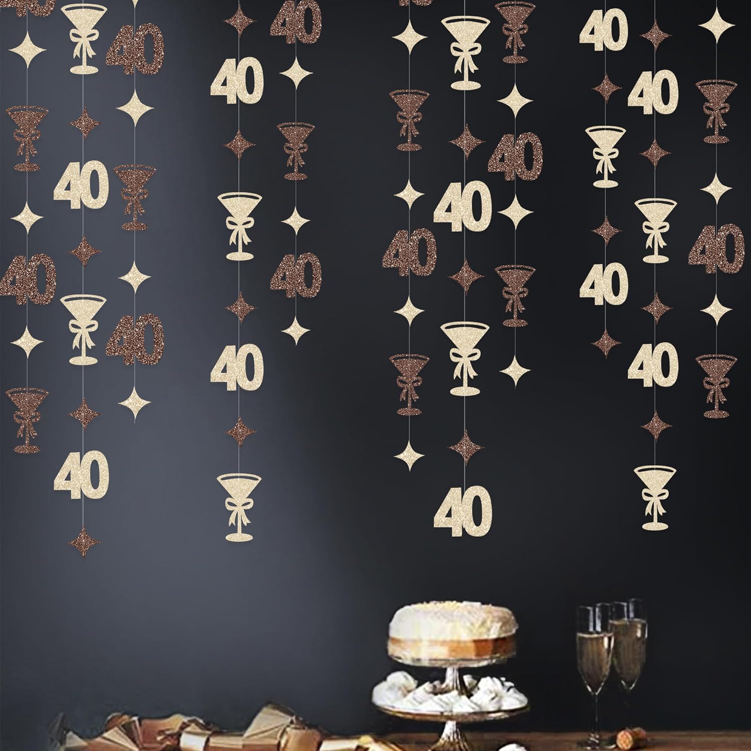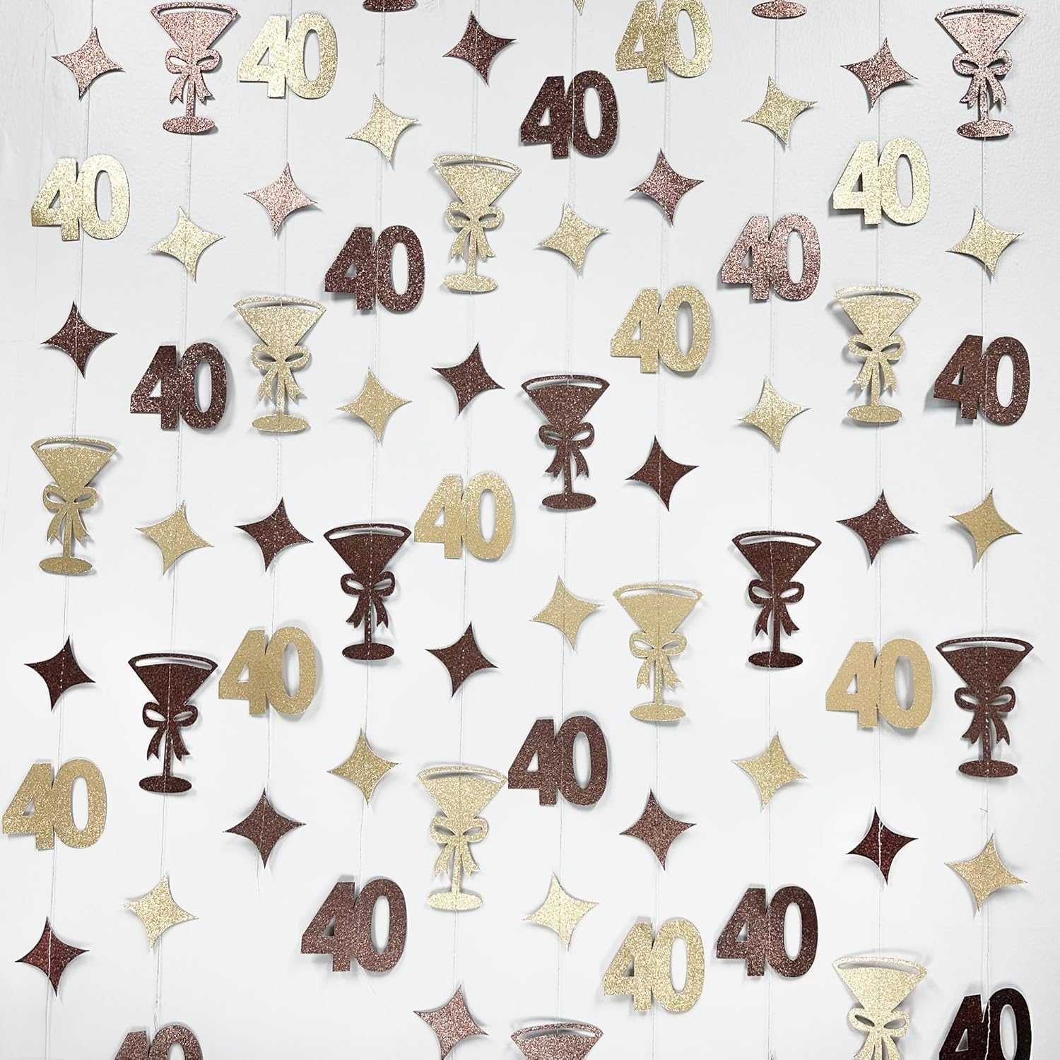 - Package includes: 4 strings of 11.8 feet/3.6 meters champagne gold brown number 40,martini and sparkling twinkle star garlands , totally is 47.2 feet/14 meters. Perfect for martini 40th birthday decorations!