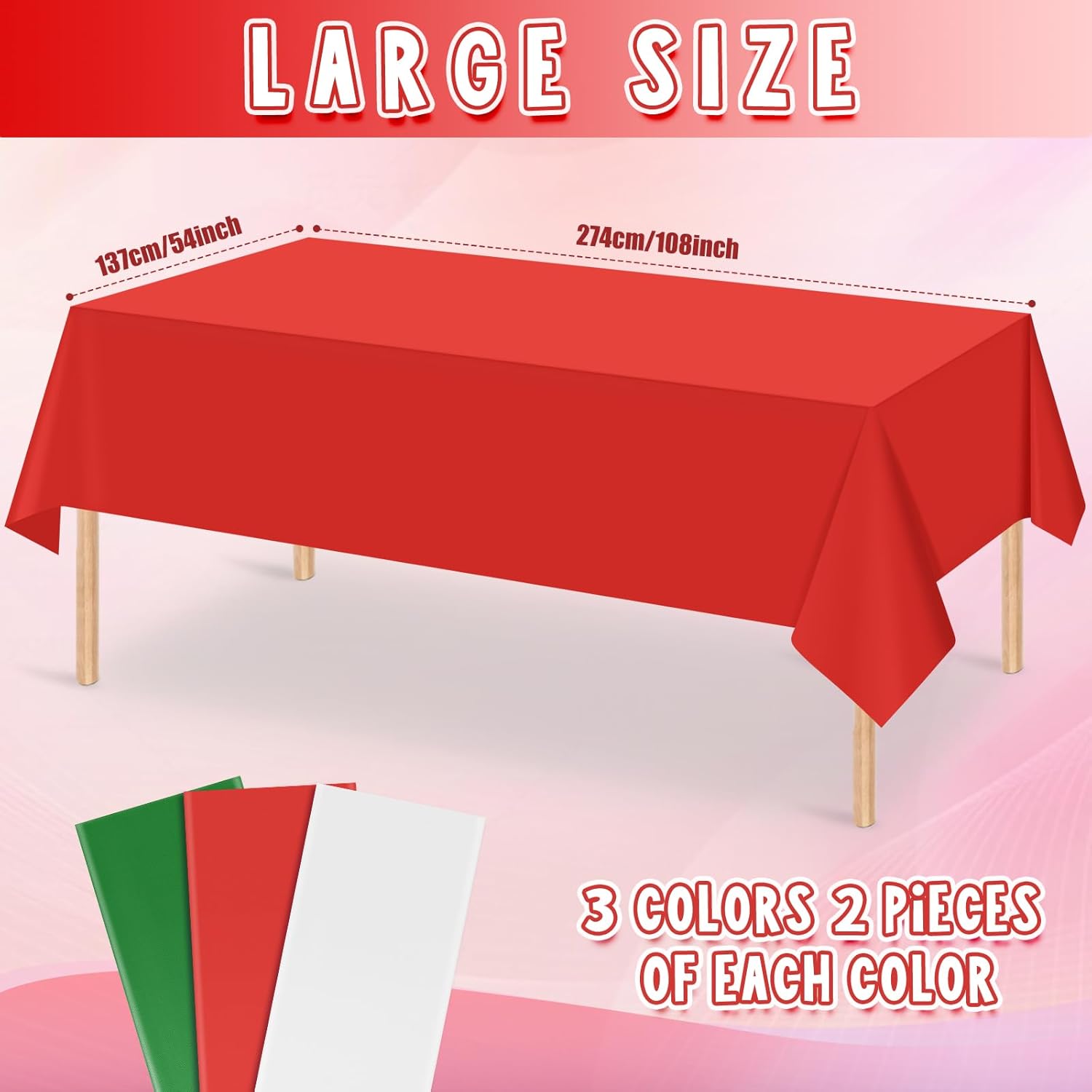 - Package include:you will receive 6pcs Christmas theme plastic rectangle tablecloth,contains with stylish and classic red, green, white color, 2 pieces of each color.it’s great for Christmas themed party,holiday, Italian party and Christmas dining decorations.